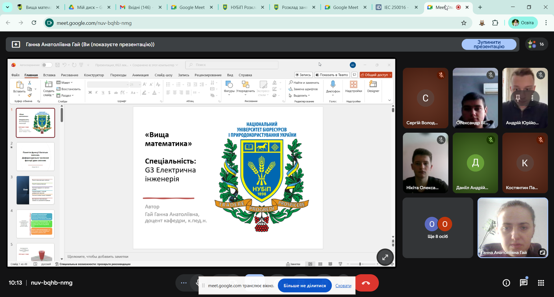 Витоки історії кафедри вищої та прикладної математики беруть початок з 1932 року, коли її було організовано на факультеті електрифікації сільського господарства у складі колишнього Інституту механізації і електрифікації сільського господарства. У цей період тут працював видатний український математик-академік Михайло Пилипович Кравчук (1892-1942 р), наукові праці якого (15 робіт) були надруковані в Записках інституту. В різний час кафедру вищої математики очолювали: доцент І.А. Езрохі (1954-1976), доцент М.М. Долгов (1976-1982), професор І.М. Сулима (1982-2004), доцент В.Г. Слюсаренко (2004-2006р.).