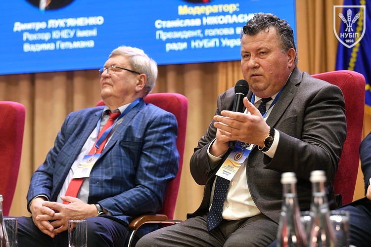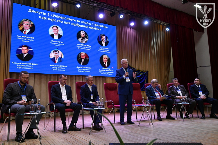 Three discussion panels were held on the sidelines of the Forum. The first of them «Universities and government: strategic partnership for the restoration of Ukraine» was moderated by president of the University, academician of the National Academy of Pedagogical Sciences and National Academy of Agrarian Sciences of Ukraine, Minister of education and science of Ukraine in 2005-2007 Stanislav NIKOLAENKO. Participation in the discussion about the present day of universities and problems of higher education, legislative initiatives, cooperation with academic communities was taken by people's deputy of Ukraine Ivan KYRYLENKO, Deputy Prime Minister of Ukraine for agriculture in 2005-2006 Yuriy MELNYK, chairman of the state service of Ukraine for food safety and consumer protection Serhiy TKACHUK, general director of the state enterprise "Forests of Ukraine" Yuriy BOLOKHOVETS, rectors of T. Shevchenko National University of Kyiv Volodymyr BUHROV, National Technical University of Ukraine "Ihor Sikorskyi Kyiv Polytechnic Institute" Anatoliy MELNYCHENKO, Vadym Hetman Kyiv National Economic University of Ukraine Dmytro LUKYANENKO.