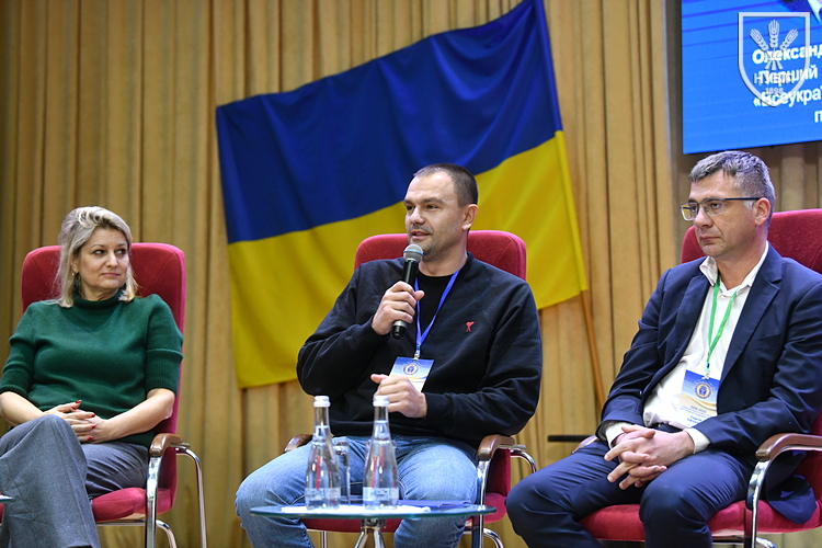 The third discussion panel «Synergy of business and universities: partnership that creates values» was led by the president of the NGO «Institute of geopolitics and strategic management» Vitaliy SKOTSYK. Reflections on business expectations from cooperation with the higher education institutions, competencies of the future, efficiency and lack of mechanisms for cooperation between companies and academic communities, motivation to invest in R&D projects, overcoming existing barriers were voiced by agricultural attaché of the Embassy of the Kingdom of the Netherlands Karolien SPAANS, CEO of Terra Food group of companies Serhiy OVCHARUK, director of JLLC «Agrofirma"Mayak» Oleksiy VASYLCHENKO, senior HR director at Carlsberg Ukraine Lyudmyla HOLYINSKA, founder of the farm «Tetiana 2011» (TM "ZINKA") Vasyl TSVYK, first vice-president of the All-Ukrainian Association of bakers Oleksandr TARANENKO, president of the Company «E-consulting» Andriy BEZGUBENKO, General Director of COFCO AGRI Resources Ukraine Volodymyr OSADCHUK, general director of the agricultural company Zorya Agro Group Iryna KOSTYUSHKO and a serviceman of the Armed Forces of Ukraine Andriy DASHCHENKO.
