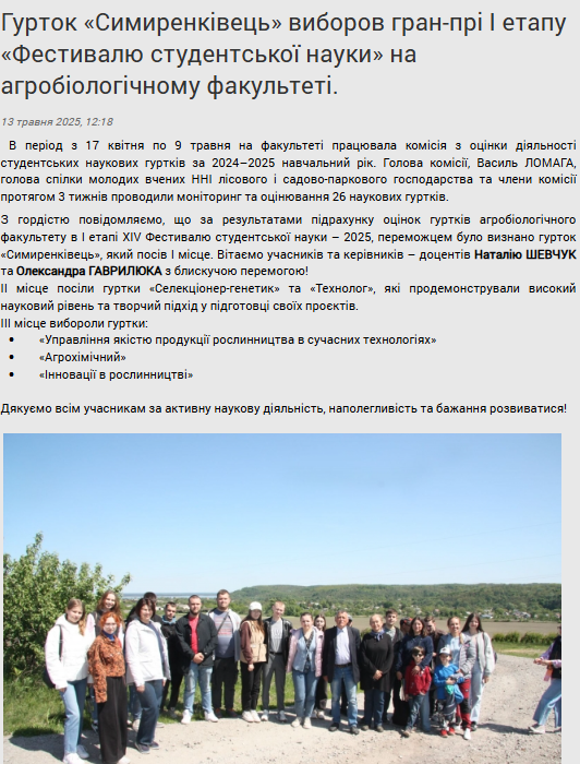 Опонент – доктор сільськогосподарських наук, професор ЛАВНИЙ Василь Володимирович, проректор з наукової роботи Національного лісотехнічного університету України Міністерства освіти і науки України