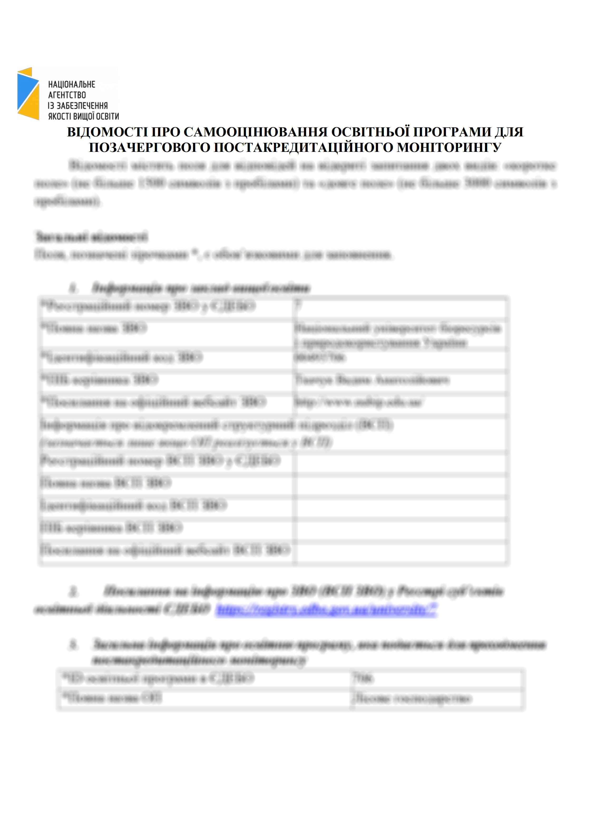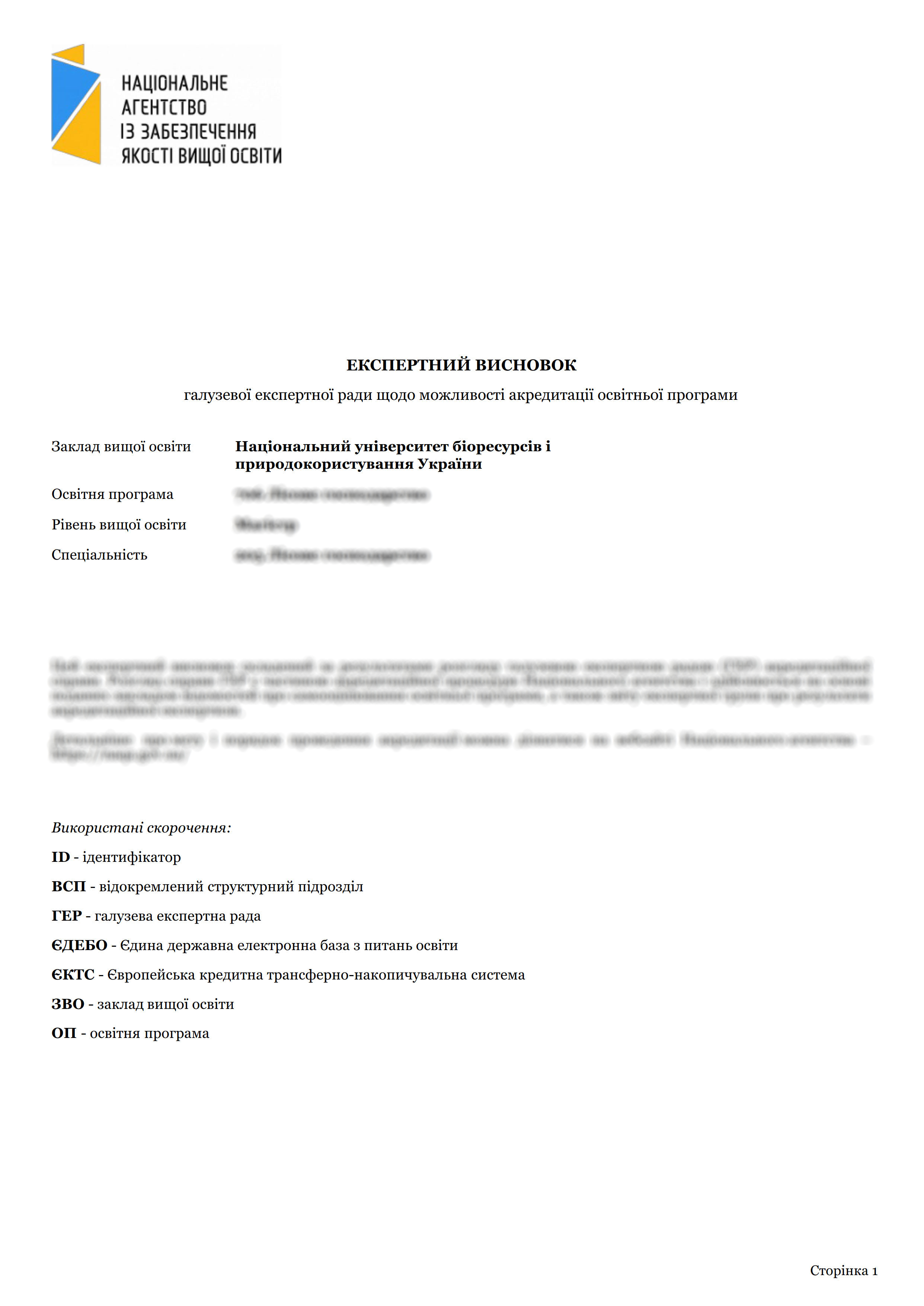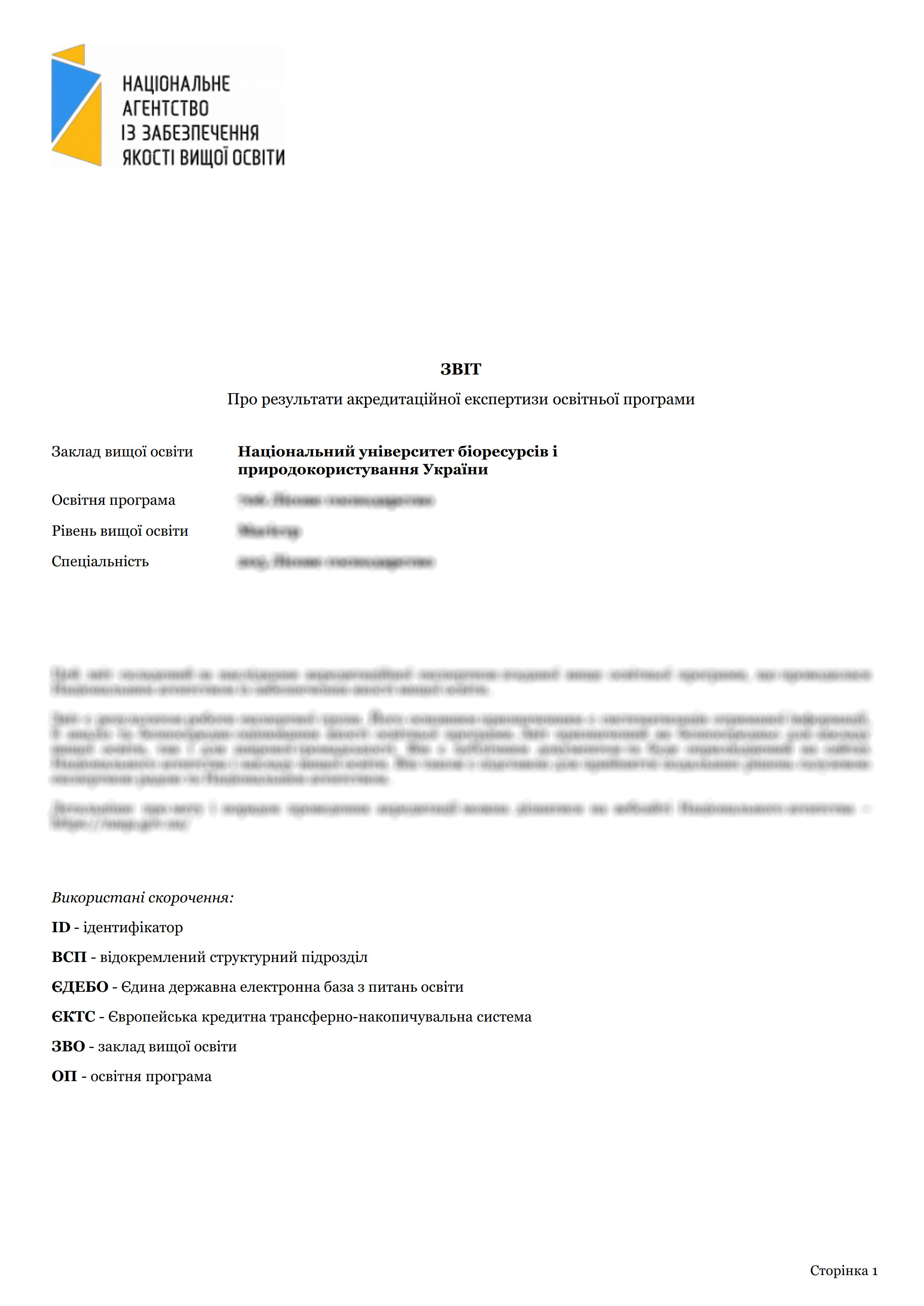 Інформація про акредитацію освітніх програм спеціальності "Садово-паркове господарство"