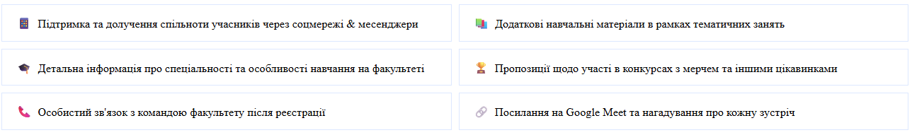 Після заповнення форми реєстрації наша команда факультету зв'яжеться з Вами та надішле всі необхідні матеріали на вказану електронну адресу.