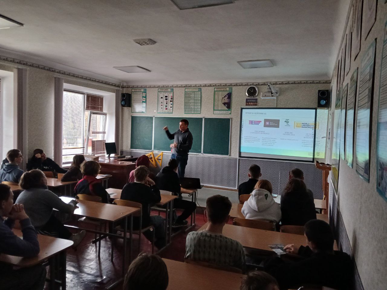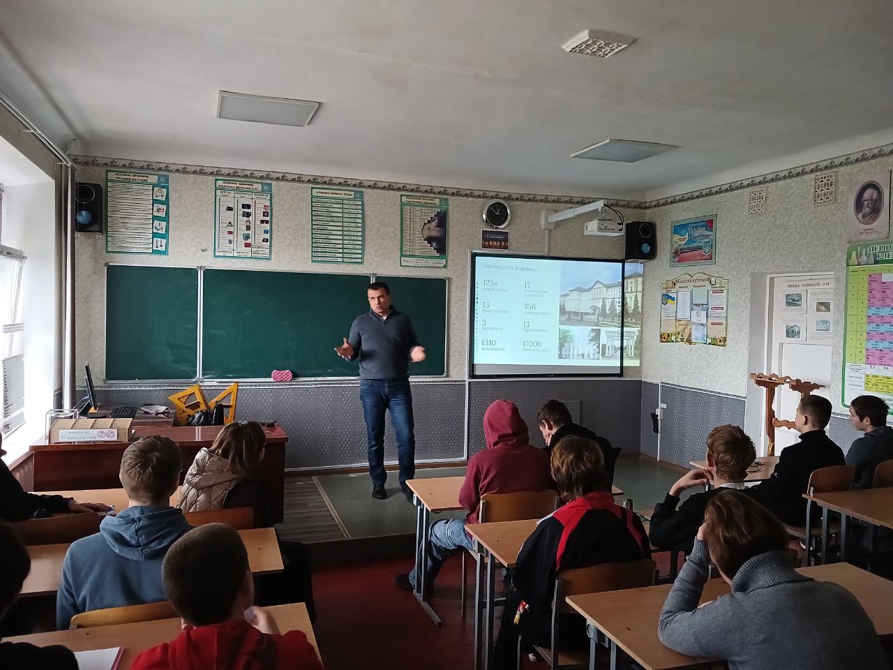 13 листопала 2025р. до Новодмитрівського опорного ліцею Золотоніського району для проведення профорієнтаційної роботи завітав доцент кафедри годівлі тварин та технології кормів Іван Миколайович БАЛАНЧУК. Старшокласники мали нагоду дізнатися про сучасні виклики й можливості аграрної галузі, а також про професії, що годують населення в буквальному значенні.