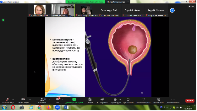 Згідно теми лекційного заняття лектор Тетяна Палюх висвітлила схему дослідження сечової системи у тварин, дослідження сечовиділення, нирок, сечоводів, сечового міхура і уретри. Окрему увагу було приділено основним синдромам хвороб сечової системи. Впродовж заняття студенти із зацікавленістю сприймали матеріал.