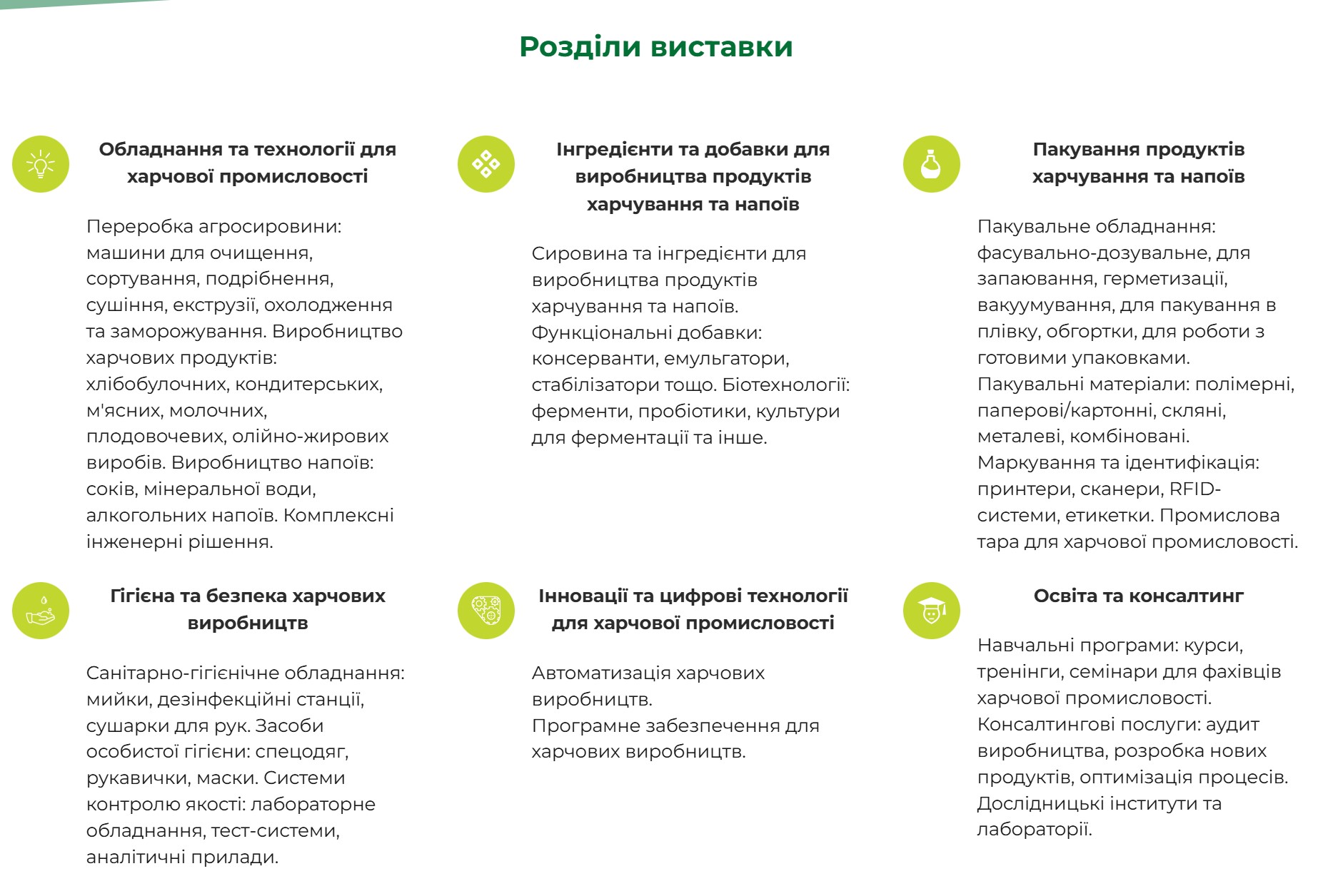 Agro2Food — професійна виставка технологій, обладнання, інгредієнтів та пакувальних рішень для агропереробки та харчової промисловості. Подія об'єднує виробників і постачальників рішень для хлібопекарської, кондитерської, молочної, м’ясної, плодоовочевої, олійно-жирової галузей та для виробництва напоїв.