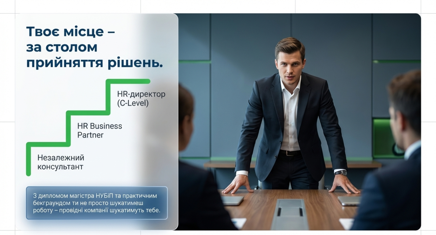 Програма для всіх: студентів, молодих спеціалістів, людей, які змінюють кар’єру, і досвідчених керівників. Якщо ви прагнете працювати з людьми, будувати кадрові стратегії, ставати HR-лідером або керувати командами — ця програма саме для вас.