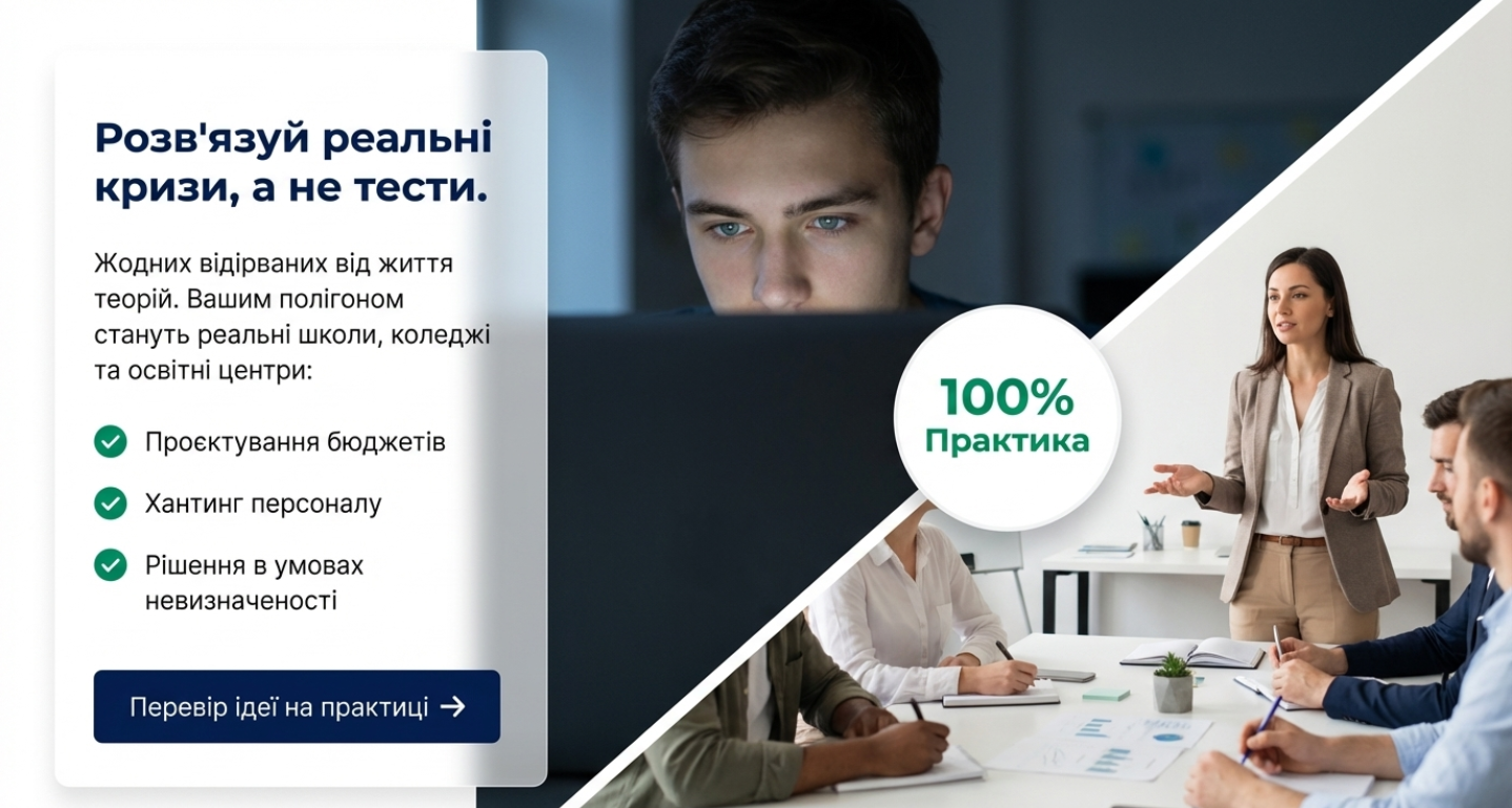 Програма створена для тих, хто хоче очолити сучасний навчальний заклад і змінювати освіту зсередини. Якщо ви працюєте в сфері освіти або приходите з іншої галузі - отримаєте практичні інструменти, які можна застосувати одразу: від кадрового менеджменту до фінансового та стратегічного планування.