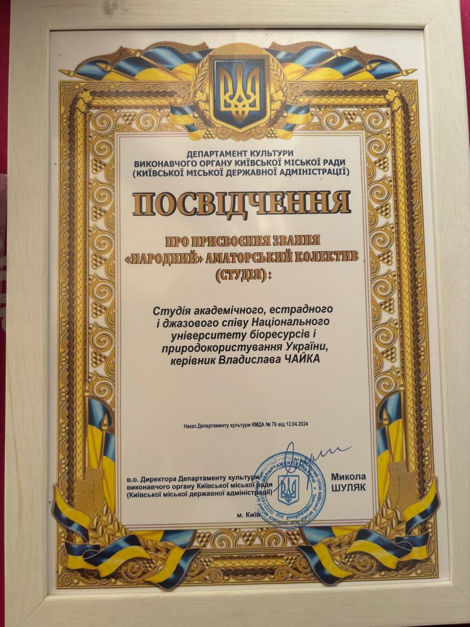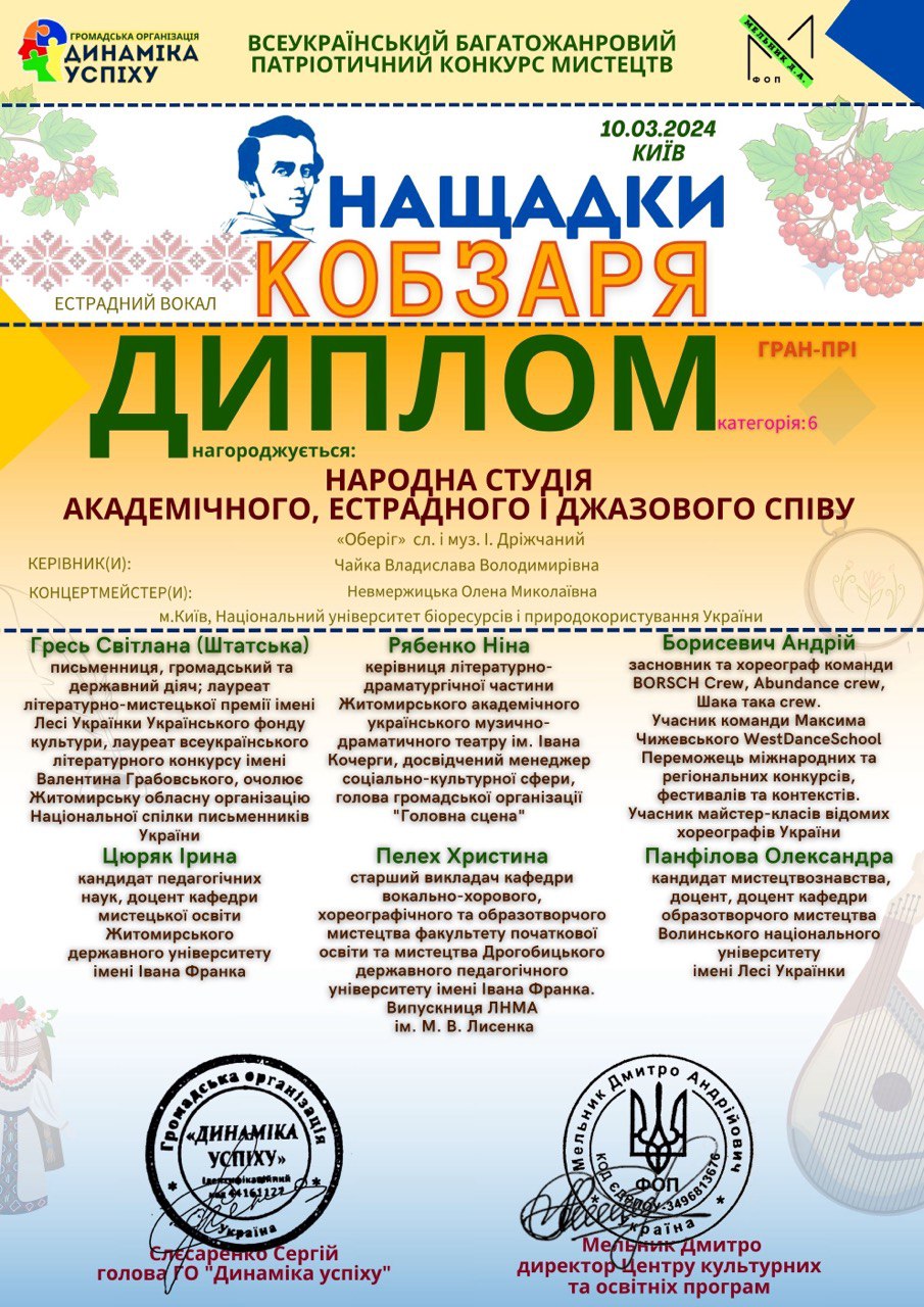 У 2024 році студія успішно пройшла атестацію і отримала посвідчення про присвоєння звання «народний» аматорський колектив (Наказ Департаменту культури КМДА №76 від 12.04.2024).