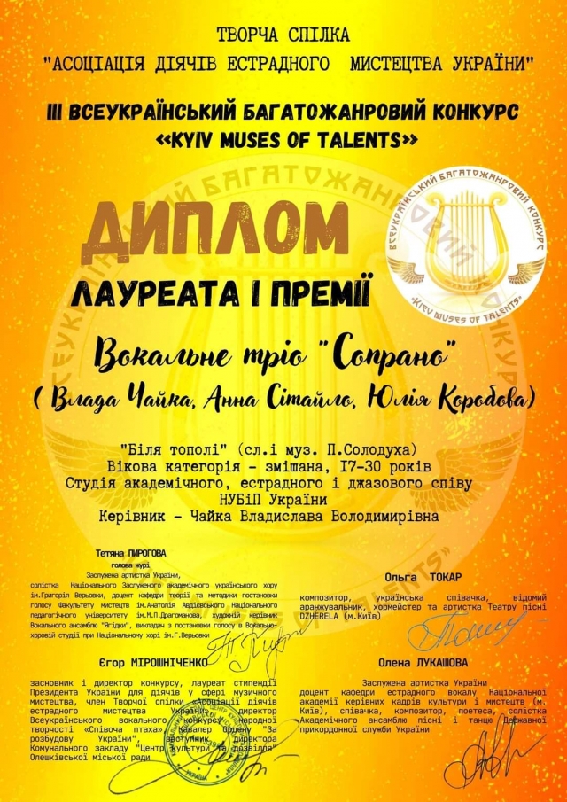 Нині студія має лауреатів та переможців багатьох міжнародних та національних фестивалів та конкурсів: «Голосіївська весна», «Ми діти твої, Україно», «Оксамит», «Доля», «Пісня буде поміж нас», «Kyiv muses of talents», «Змагаймось за нове життя» ім. Лесі Українки, «Чубинськийfest», «Молодь за мир», «Студентські барви» та ін.. Випускники студії є учасниками телевізійних талант-шоу «Голос країни», «Х-фактор», учасниками благодійних заходів Києва та за його межами.