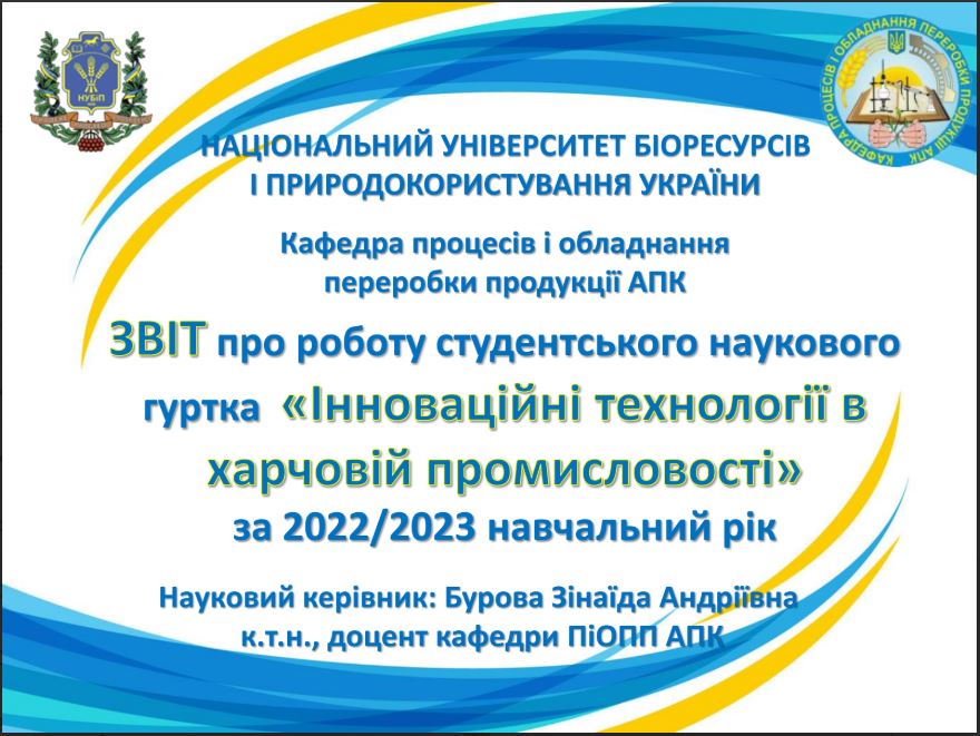 Науковий гурток «Інновації у процесах харчових виробництв»