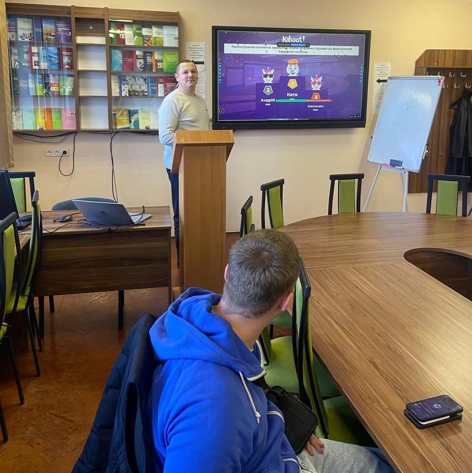Під час лекції викладач активно використовував наочні матеріали, зокрема тематичні відеофрагменти, що сприяли кращому розумінню особливостей організації оплати праці та сучасних підходів до її формування. Це забезпечило ефективне поєднання теоретичних знань із практичними прикладами та підвищило зацікавленість здобувачів вищої освіти у навчальному процесі. Здобувачі продемонстрували високий рівень активності: брали участь в обговореннях, відповідали на запитання та аналізували запропоновані ситуації. Для перевірки рівня засвоєння матеріалу та підвищення інтерактивності заняття було використано онлайн-платформу Kahoot!, завдяки якій здобувачі вищої освіти змогли пройти тестування в ігровій формі.