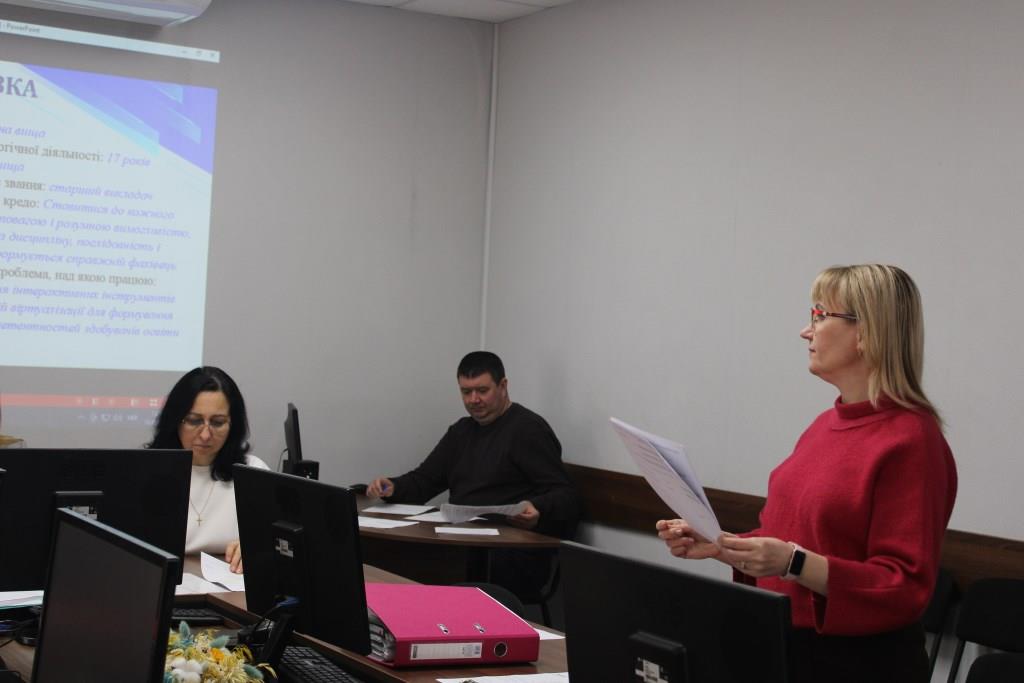 Розпочала засідання голова атестаційної комісії, директор коледжу Олена ЛИТОВЧЕНКО, яка звернула увагу присутніх на основні критерії щодо підтвердження або встановлення кваліфікаційної категорії «спеціаліст вищої категорії» та педагогічних звань. Також підкреслила, що метою атестації педагогічних працівників є, перш за все, стимулювання цілеспрямованого і безперервного підвищення рівня їх професійної компетентності, розвитку творчої ініціативи, забезпечення ефективності освітнього процесу.