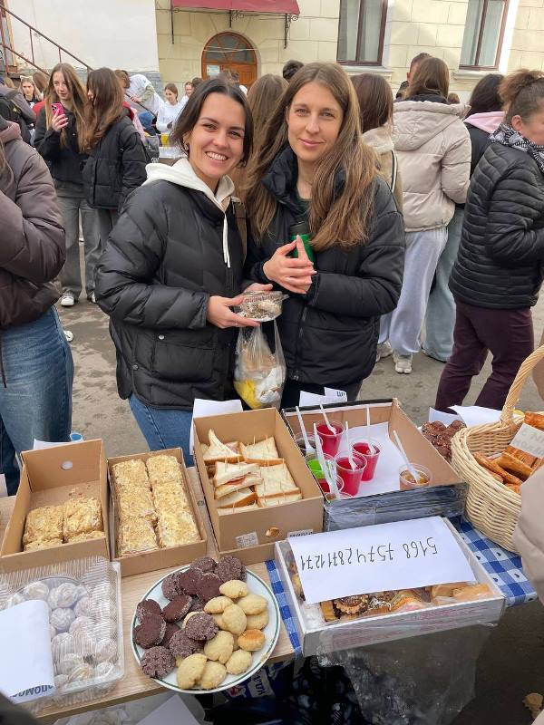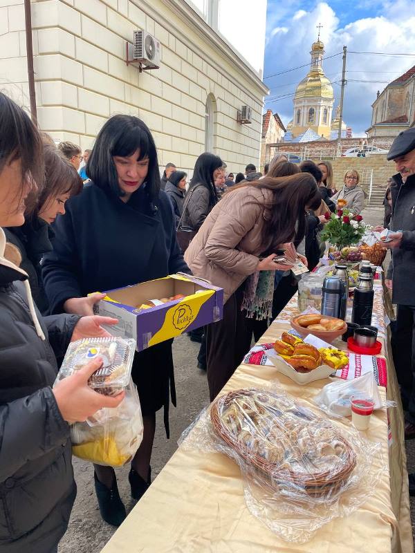 Світлана Ігорівна стала одним із найактивніших покупців на ярмарку! Зі щирою усмішкою, наче дбайлива господиня, вона обходила столи, захоплено розпитуючи про рецепти випічки у викладачів і студентів. Щоб нікого не образити та відзначити старання кожної групи, вона купувала домашні смаколики, приготовані як першокурсниками, так і викладачами.