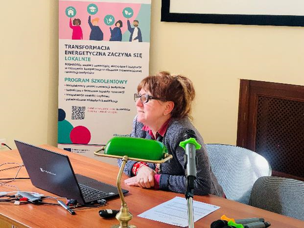 Зустріч розпочалася з привітального слова пані Anna Jaskuła, Executive Director Асоціації муніципалітетів Польської мережі «Energie Cités». У своєму виступі вона привітала учасників заходу та наголосила на важливості реалізації проєкту, спрямованого на підвищення кваліфікації та перекваліфікацію зацікавлених сторін у сфері сталого енергетичного розвитку, енергоефективності та впровадження кліматичних ініціатив, зокрема в межах пакета послуг «єдиного вікна» (OSS). Вона підкреслила, що розвиток професійних компетенцій, обмін досвідом та впровадження ефективних механізмів підтримки сприятимуть активнішому впровадженню сучасних енергетичних рішень на місцевому рівні.