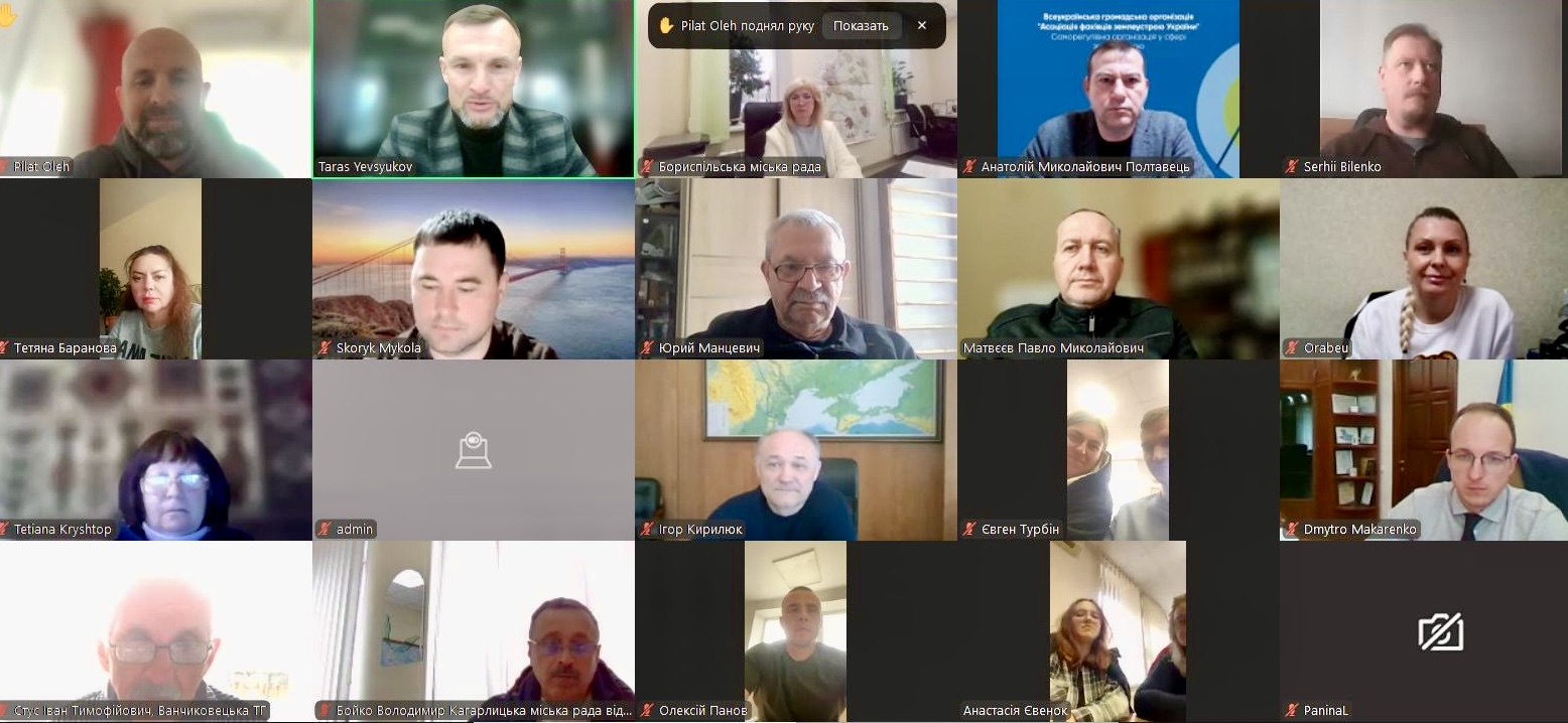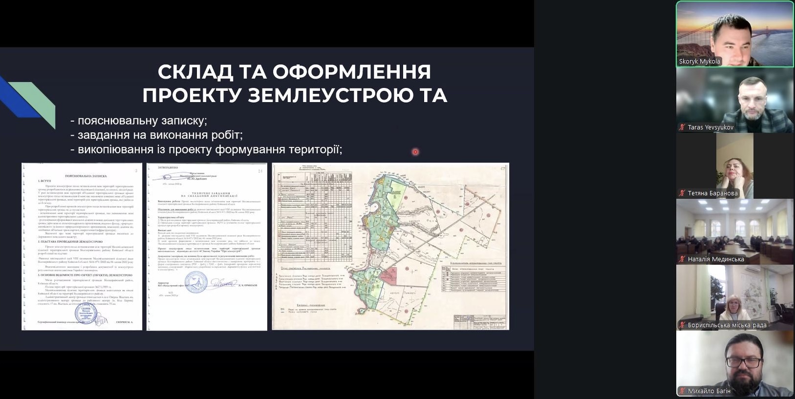 До обговорення запросили помічника-консультанта народного депутата України, члена Ради асоціації «Земельна спілка України» Сергія БІЛЕНКА, який озвучив законодавчі ініціативи для спрощення встановлення та реєстрації меж громад. Серед причин повільного просування процесу встановлення меж громад є певні нормативні бар’єри. Для їх вирішення потрібно внести зміни до законодавства, наприклад, вирішити земельні спори і спори щодо погодження меж шляхом часткового погодження меж, погодження меж громад на підставі індексної кадастрової карти.