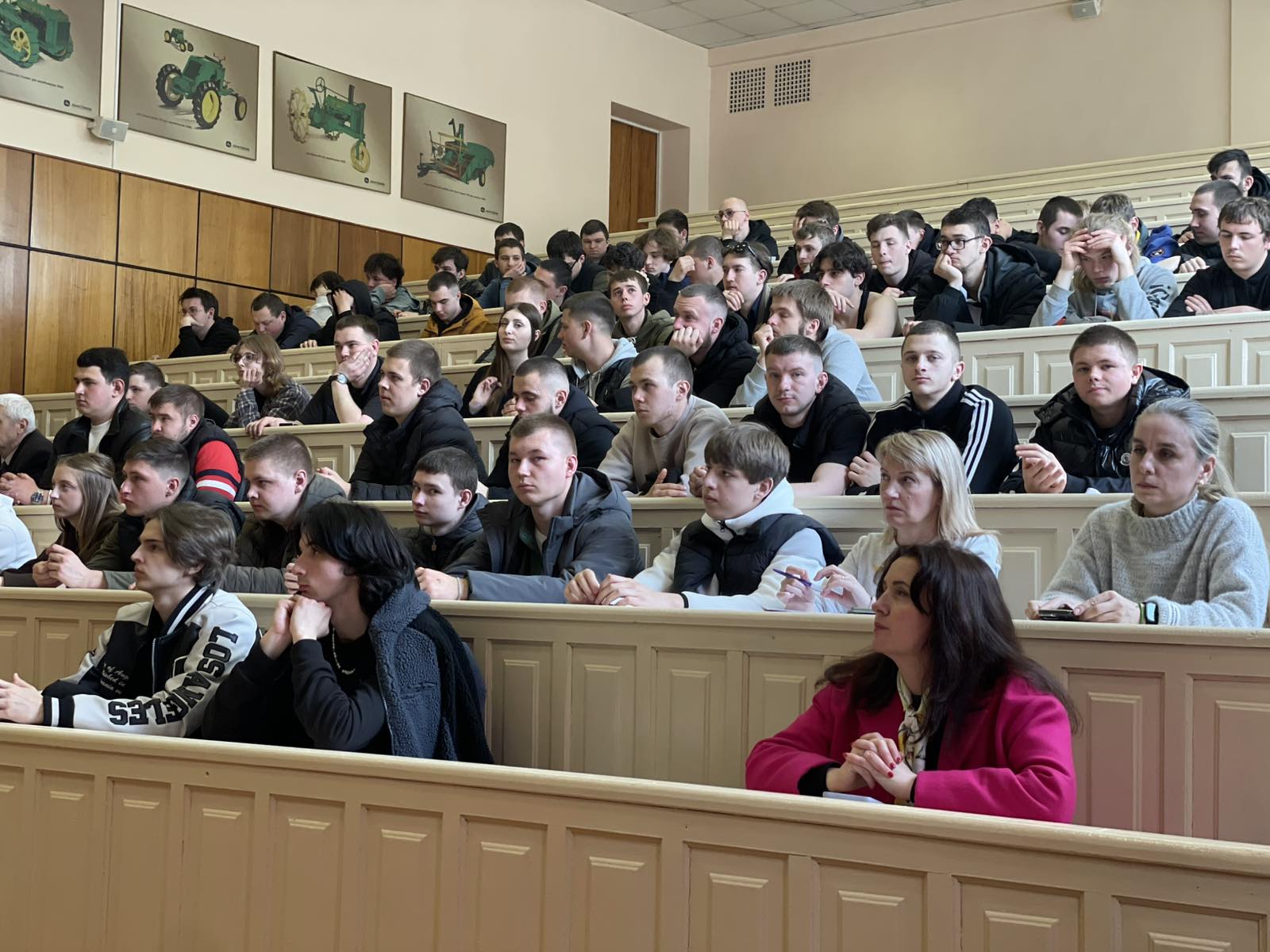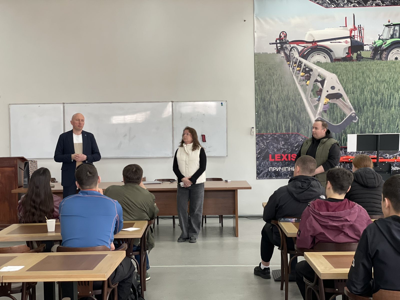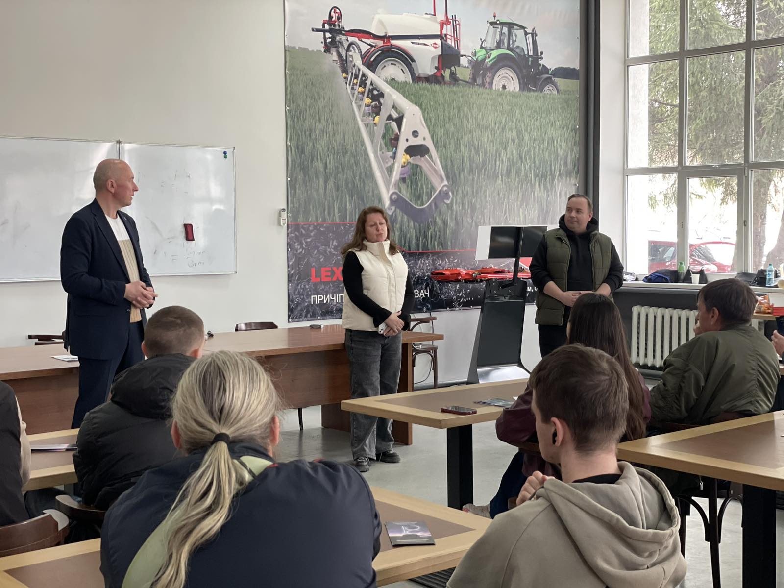 Завідувачі кафедр Лілія САВЧЕНКО та Євген КАЛІНІН презентували гостям особливості освітніх програм спеціальності «Автомобільний транспорт». Євген КАЛІНІН детально розповів про сучасну матеріально технічну базу кафедри тракторів і автомобілів, наукову діяльність та особливості освітнього процесу, такі як подвійні дипломи та міжнародне стажування студентів. Лілія САВЧЕНКО розповіла про сучасні підходи до організації транспортних процесів, роль логістики в аграрному секторі, а також про використання новітніх технологій і цифрових інструментів у професійній діяльності майбутніх фахівців.