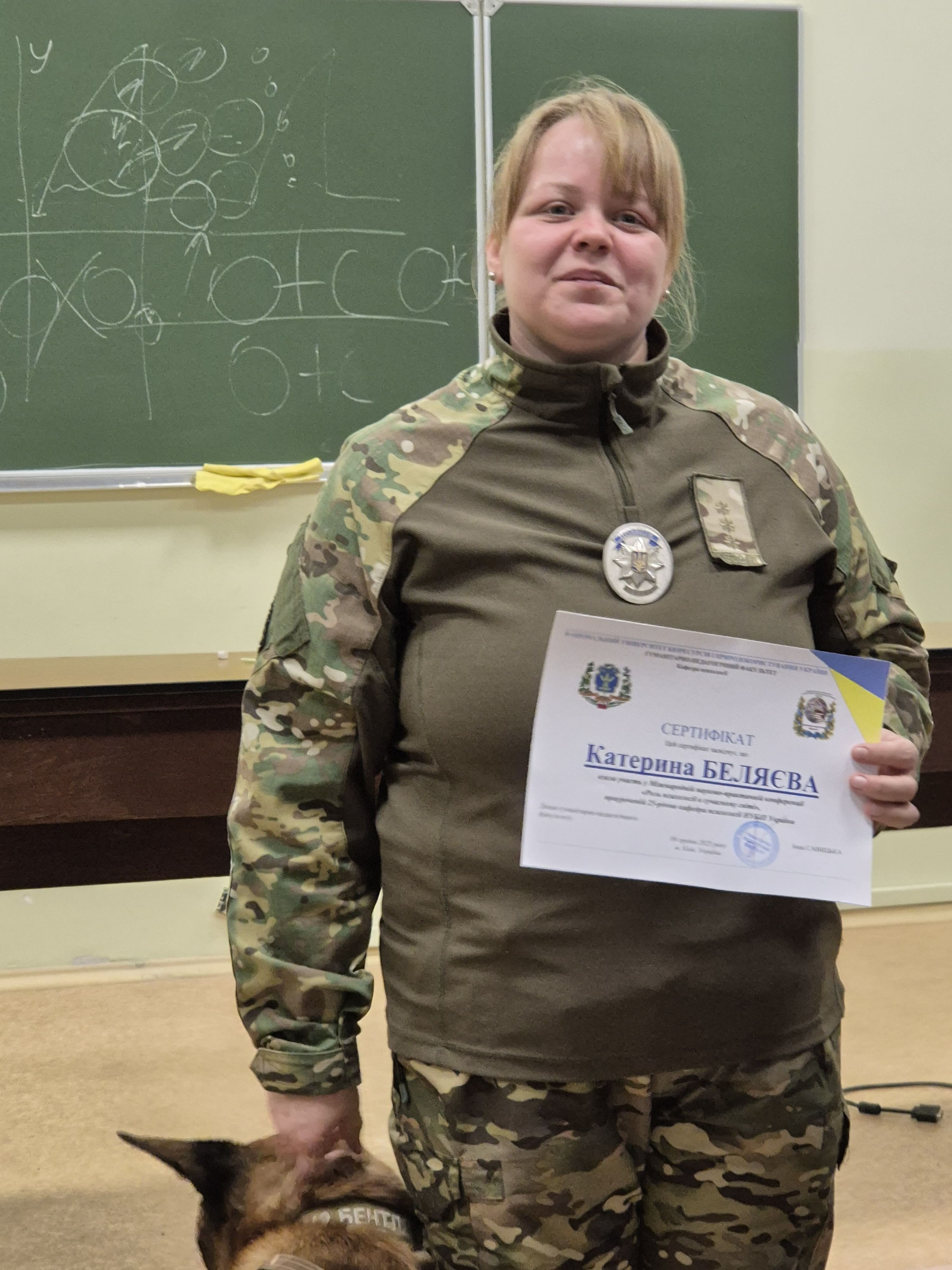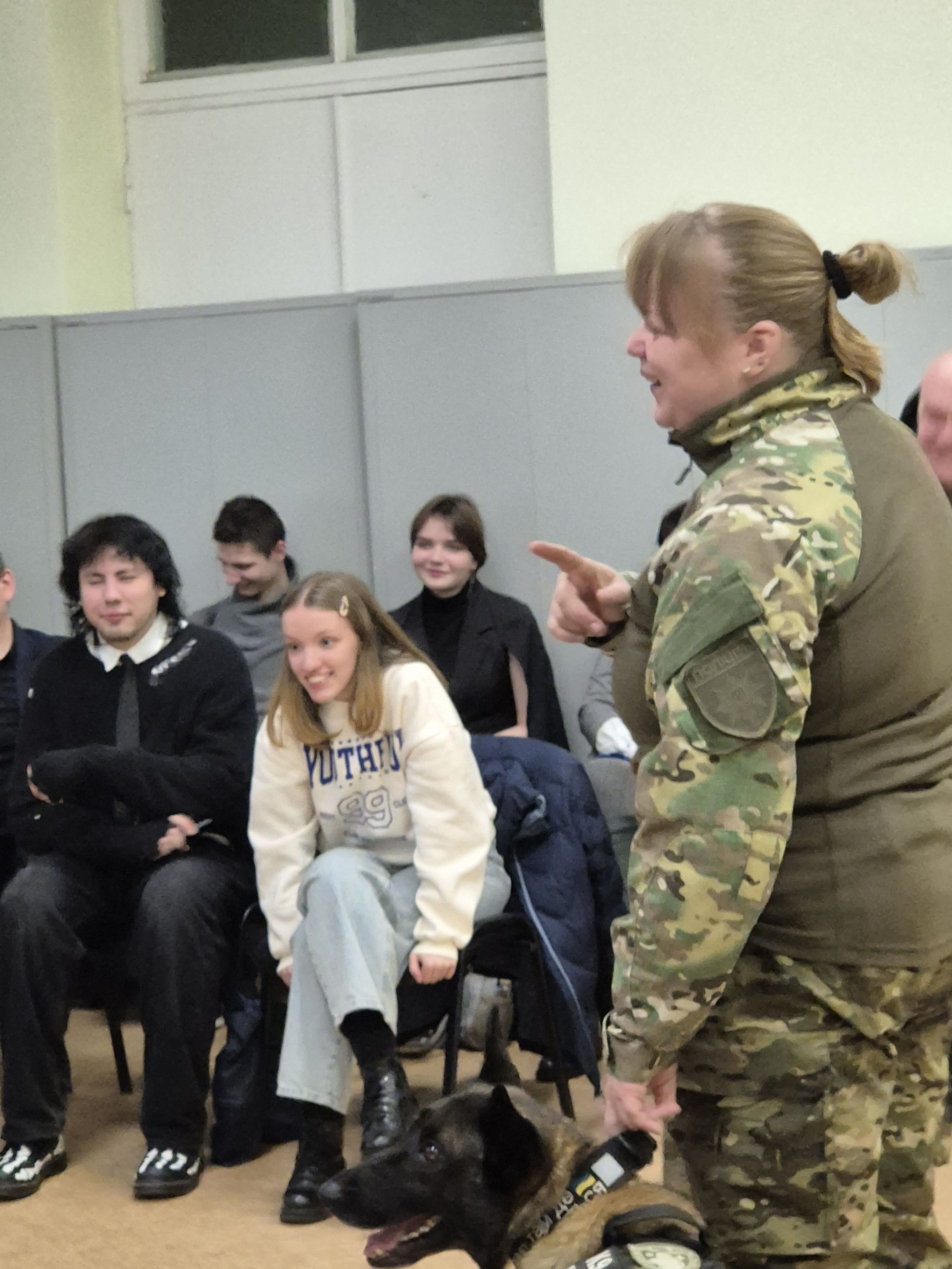Майстер-клас «Емоційна підтримка із залученням службової собаки як метод поновлення соціальних зв’язків ветерана з мікро- та макросоціумом», на якому Катерина БЄЛЯЄВА висвітлила особливості психологічної допомоги ветеранам, значення емоційної підтримки, що надається собакою, дала відповідь на запитання, як з допомогою собаки людина може долати комунікативні бар’єри в міжособистісному спілкуванні, налагоджувати психічний контакт з оточенням, зміцнювати адаптаційний ресурс.