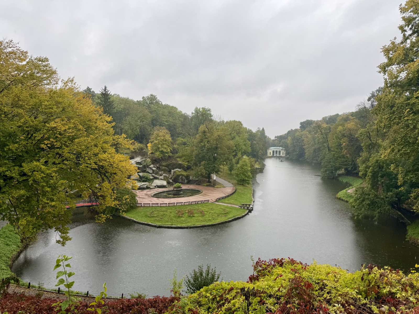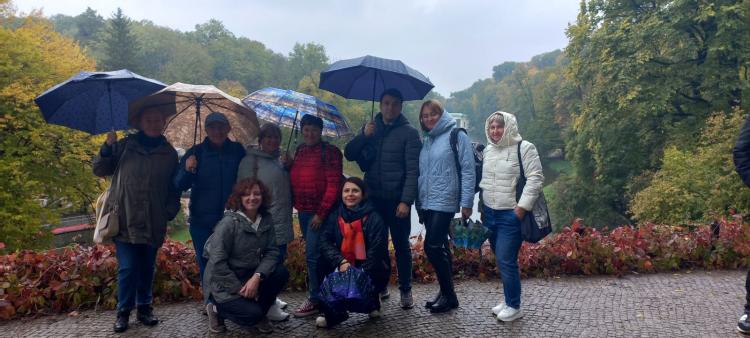 Цей унікальний ландшафтно-архітектурний шедевр, створений понад два століття тому, знову вразив своєю красою, гармонією природи і мистецтва, а дощ додав прогулянці особливої атмосфери спокою й натхнення. Під шум дощу і шелест вологого листя викладачі крокували алеями парку, відкриваючи для себе нові грані знайомих пейзажів. Гід розповідала про історію створення «Софіївки», про задум графа Станіслава Щенсного Потоцького, який подарував цей парк своїй дружині Софії, як символ вічного кохання. Дощові краплі на листі й блиск мармурових статуй ніби оживляли стародавні легенди, додаючи їм особливої романтичної глибини.