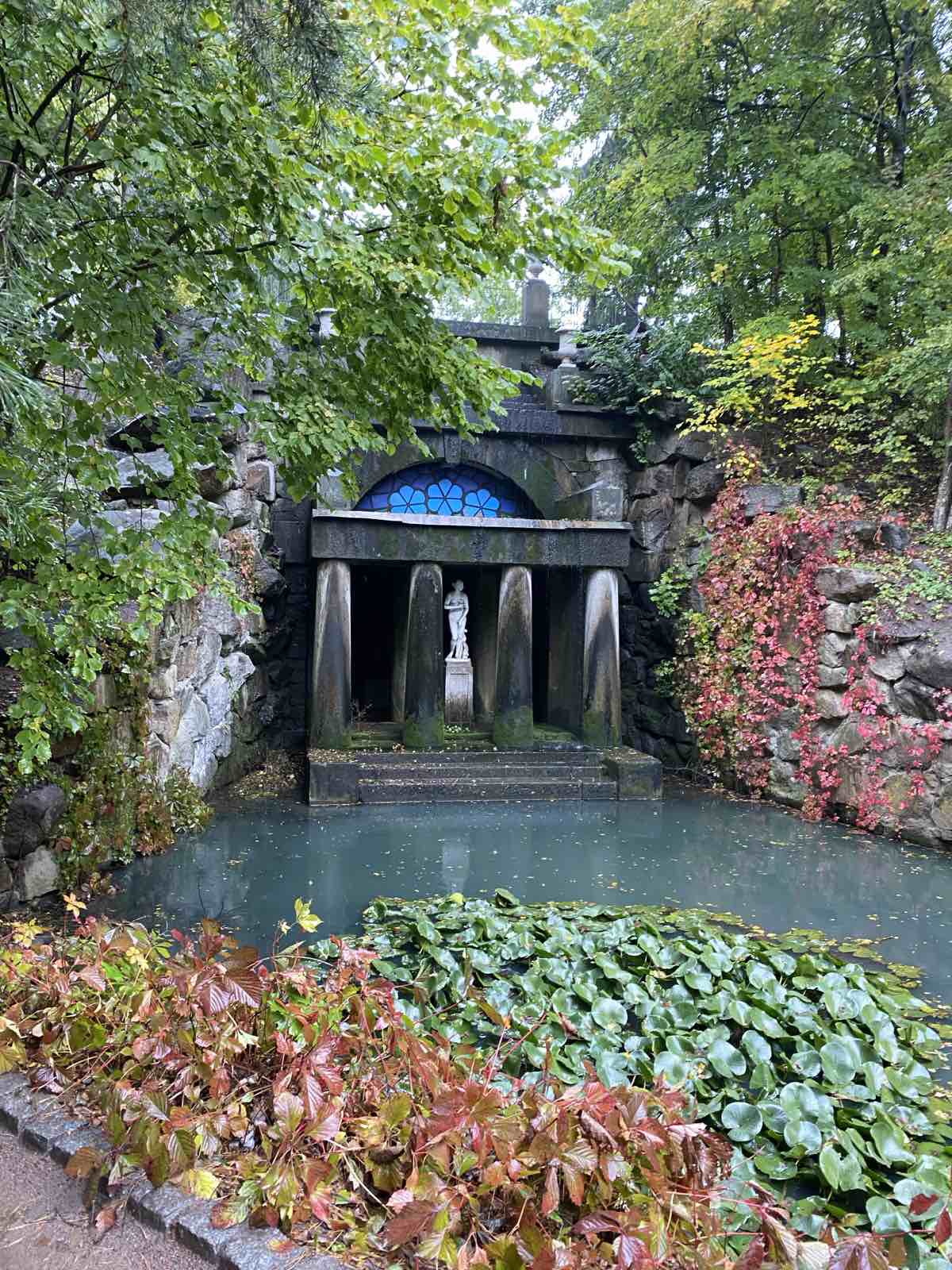 Викладачі мали змогу оглянути головні локації – захоплюючу панораму з Єлисейських полів. водоспад, грот Венери, фонтан «Змія», острів Кохання, а також здійснити подорож підземною річкою Ахерон. Дощова погода лише підкреслила велич старих дерев і чарівність водних дзеркал. Розмови про історію, ландшафтну архітектуру, екологію та символіку парку природно перепліталися з обговоренням сучасних освітніх і наукових ідей.