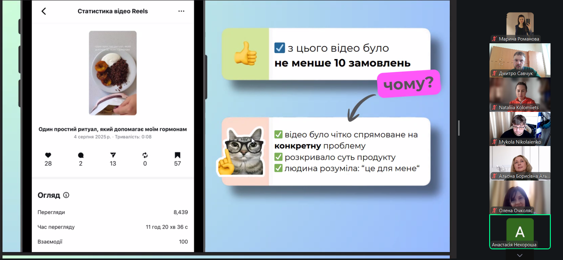 Цікавою була міні-доповідь студентки спеціальності I9 Громадське здоров’я Анастасії Нехорошої «Від охоплень до поведінкових змін: який контент у сфері здоров’я може спрацювати».