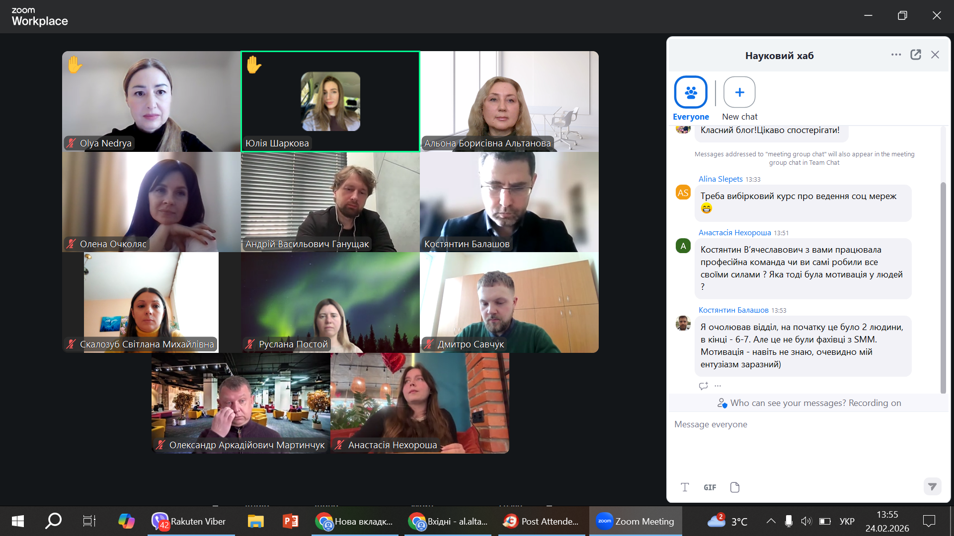 24 лютого 2026 року відбулось засідання наукового хабу кафедри громадського здоров’я та нутриціології, присвячене досить неординарній темі – веденню блогу. Зокрема, дискусія була присвячена обговоренню різних досвідів викладачів і студентів із розвитку соціальних мереж; психологічних аспектів, інструментів, вдалих практик, спостережень та труднощів при веденні блогу.