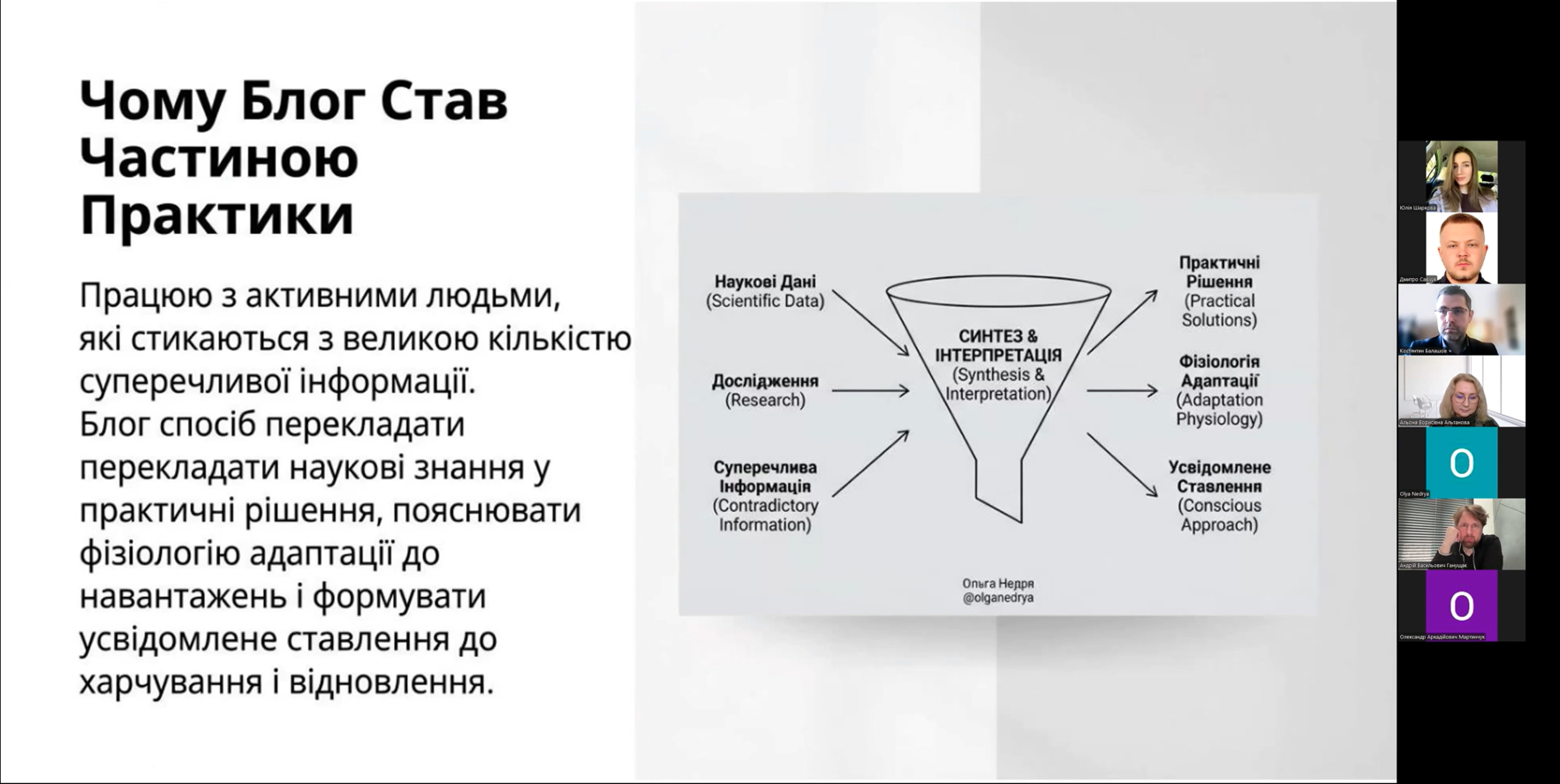 Магістрантка освітньої програми «Нутриціологія» Ольга Недря акцентувала увагу на такому аспекті, як «Від контенту до довіри: як я використовую блог як інструмент наукової комунікації з бугунами-аматорами».