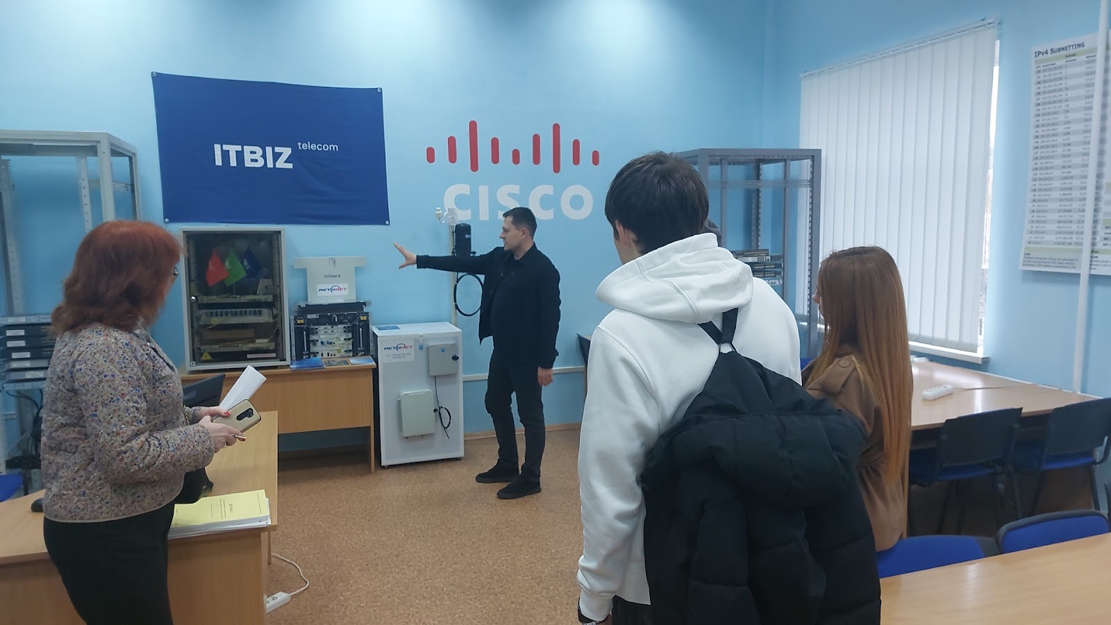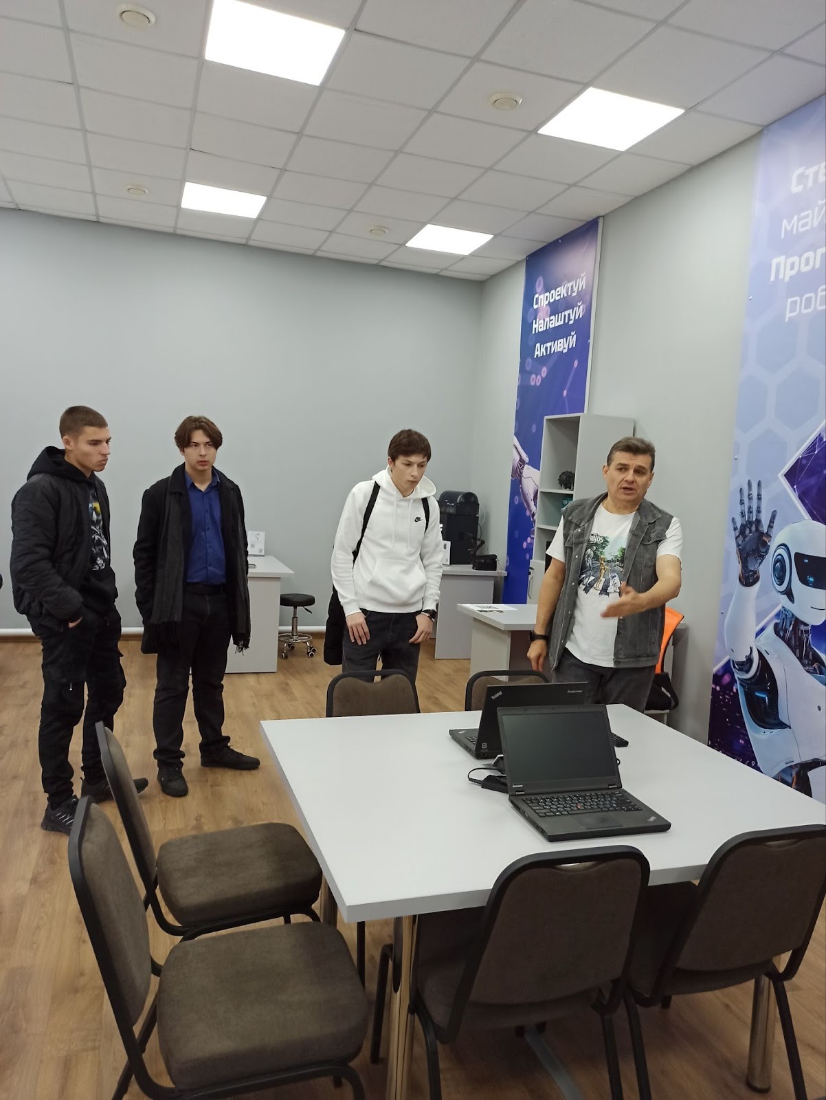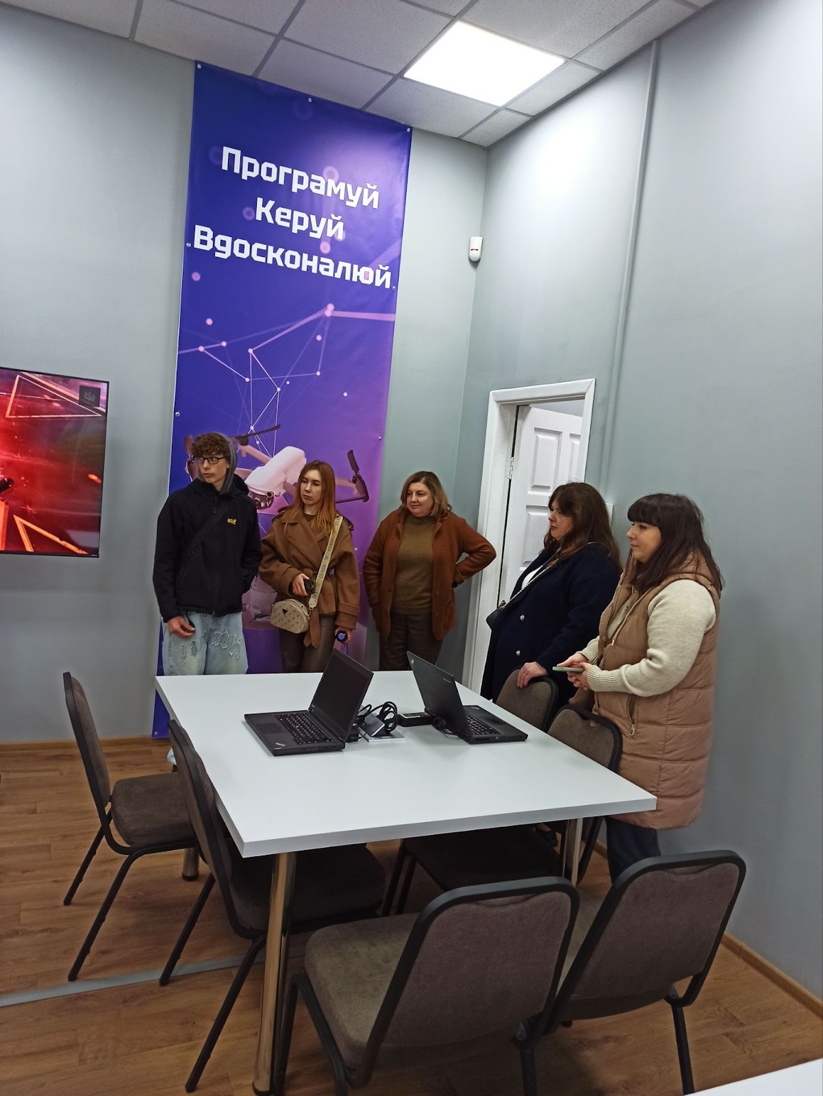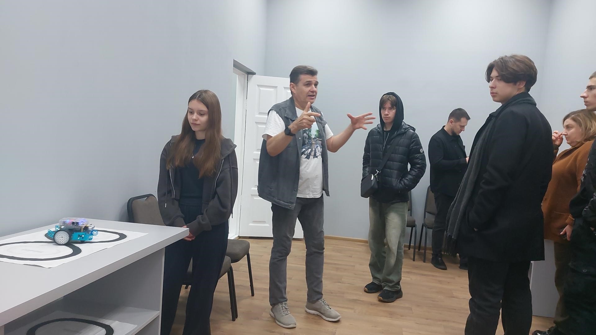 Студентки кафедри комп’ютерної інженерії, мереж і кібербезпеки продемонстрували можливості обладнання VR та інших приладів лабораторії програмування робототехніки.