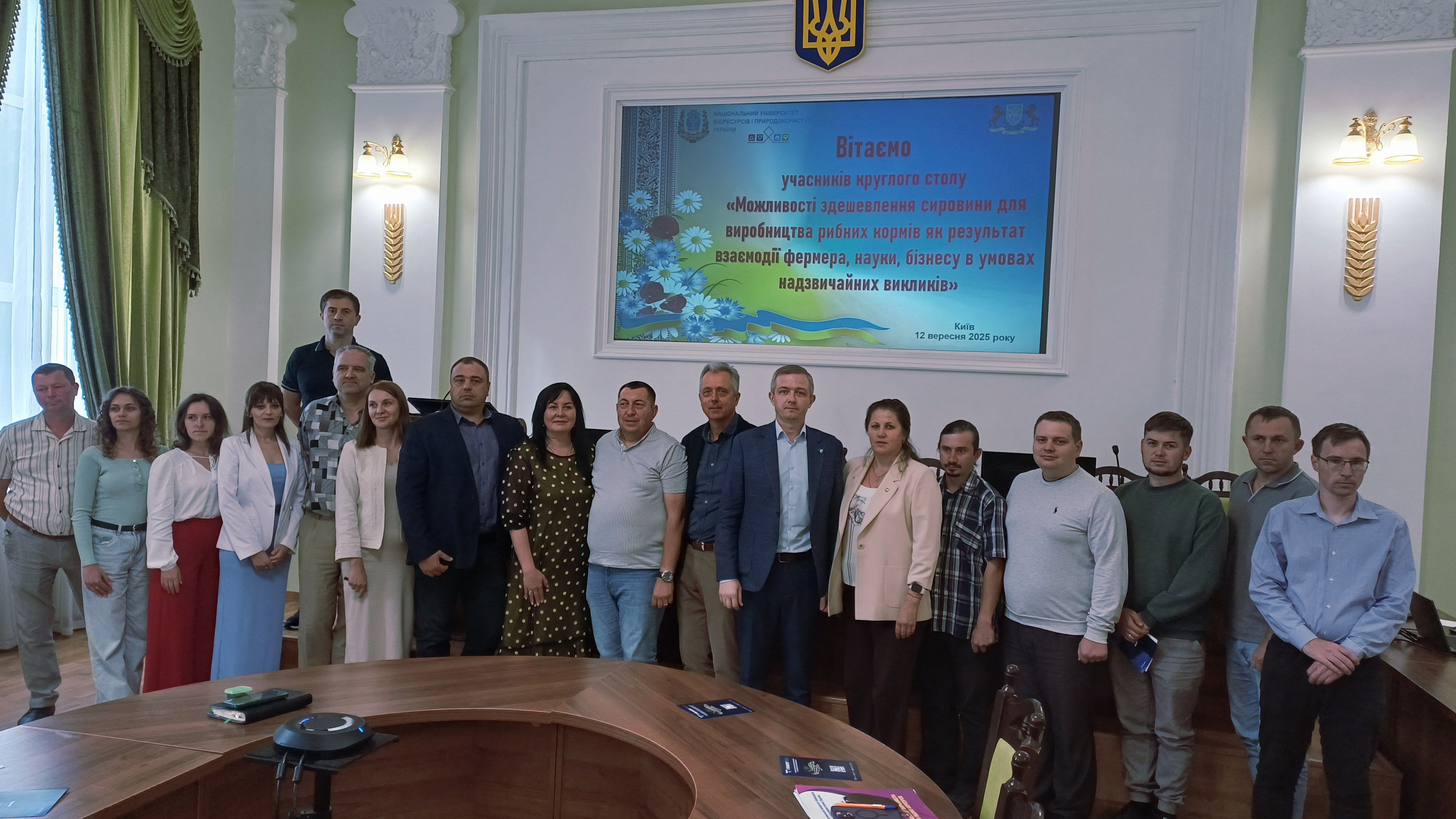 12 вересня 2025 року в Національному університеті біоресурсів і природокористування України відбувся круглий стіл на тему: «Можливості здешевлення сировини для виробництва рибних кормів як результат взаємодії фермера, науки, бізнесу в умовах надзвичайних викликів». Захід присвячений шляхам оптимізації вартості сировини для виробництва рибних кормів як результат взаємодії фермера, науки, бізнесу в умовах надзвичайних викликів. Сьогодні важливим є стимулювання навчання молодих спеціалістів та їх залучення до роботи в рибному господарстві галузі, щоб забезпечити її розвиток у майбутньому. Голова Держрибагентства Ігор Клименок у рамках круглого столу поспілкувався зі студентами, науковцями, представниками бізнесу та фермерських господарств.