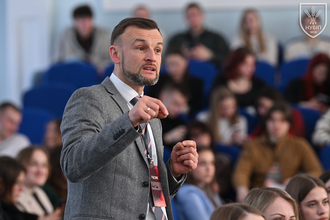 З вітальним словом до учасників звернувся ректор університету, професор Вадим ТКАЧУК. У своєму виступі він наголосив, що такі конференції формують нове покоління фахівців, здатних розвивати науку та практику землеустрою, впроваджувати сучасні технології та сприяти відбудові України. До учасників також звернувся заступник Міністра економіки, довкілля та сільського господарства України Олександр КРАСНОЛУЦЬКИЙ. Він підкреслив важливість ефективного управління земельними ресурсами для економічного розвитку держави та відзначив значення підготовки молодих фахівців, які працюватимуть над модернізацією земельної політики України. Голова правління Всеукраїнської громадської організації «Асоціація фахівців землеустрою України» Анатолій ПОЛТАВЕЦЬ привітав учасників конференції та наголосив на необхідності поєднання науки, практики та професійної спільноти для розвитку галузі. Він зазначив, що подібні наукові заходи сприяють формуванню професійних зв’язків і стимулюють молодь до подальших досліджень. Особливо зворушливим став виступ випускника факультету землевпорядкування, військовослужбовця 5-ї окремої штурмової бригади Руслана ТОПЧАНА. У своєму зверненні він подякував університету за знання і підтримку та наголосив, що сьогодні українські військові захищають не лише територію держави, а й можливість розвитку науки, освіти та майбутнього молодого покоління. До учасників конференції також звернулася голова Сенату Студентської організації НУБіП України Маргарита БУЛКОТ. Вона наголосила на важливості студентських наукових ініціатив та підкреслила, що конференція GeoPoint-2026 є чудовою можливістю для молоді презентувати власні дослідження, обмінятися ідеями та знайти нові професійні контакти. За її словами, саме активність студентської спільноти формує сучасний академічний простір університету.