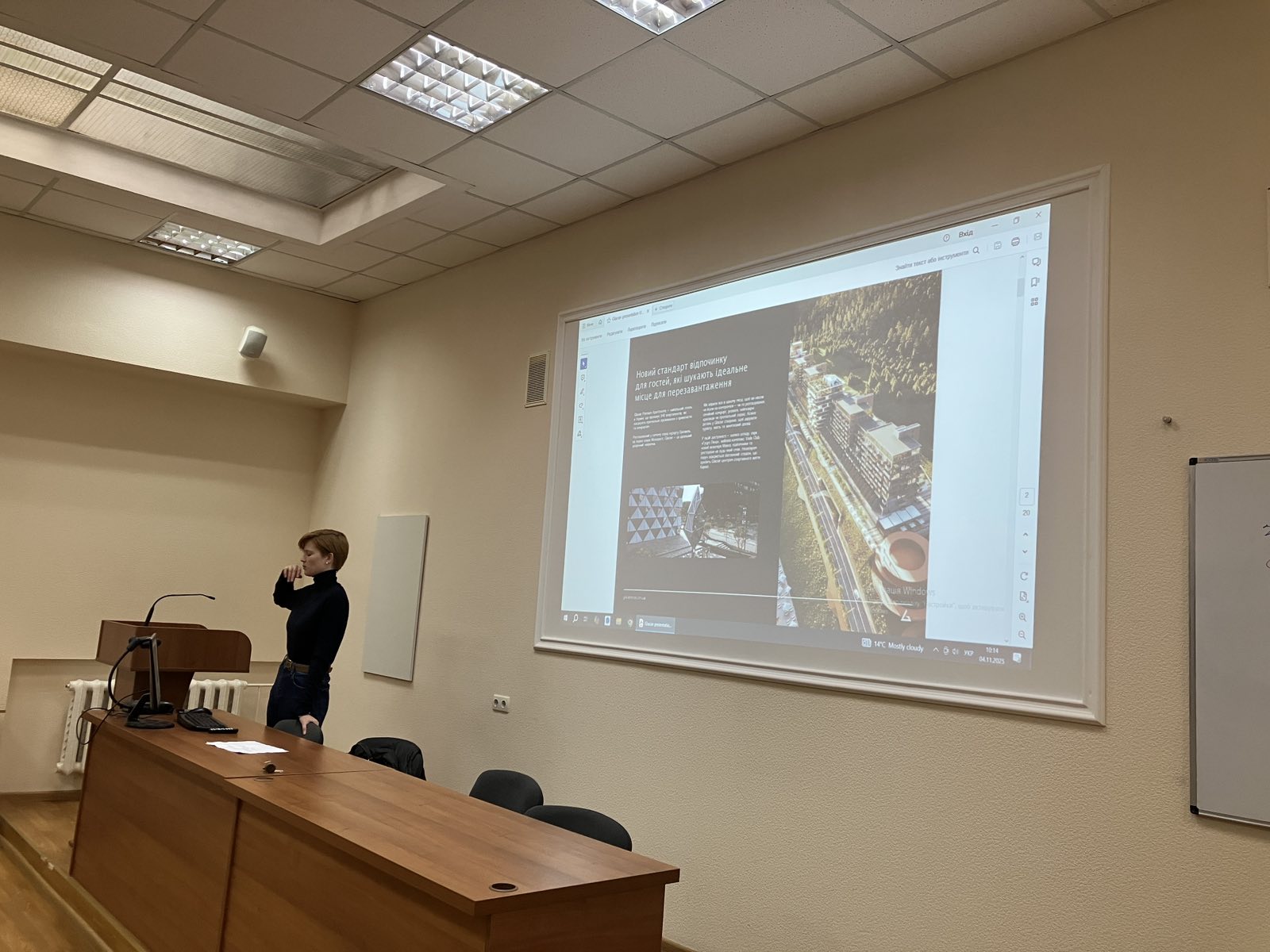 Під час зустрічі менеджерка з продажу Glacier Premium Apartments презентувала особливості функціонування одного з найсучасніших апарт-готелів Буковелю, розповіла про стандарти обслуговування гостей, корпоративну культуру, систему якості та підходи до управління персоналом. Особливу увагу спікерка приділила цифровим інноваціям, що впроваджуються у роботі готелю, зокрема у сфері бронювання, маркетингу та комунікації з гостями.