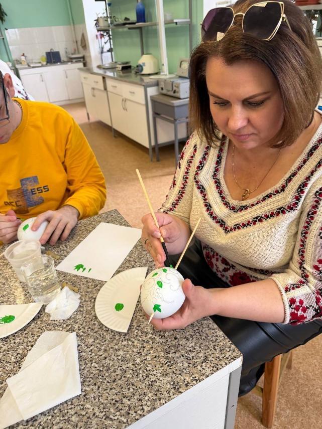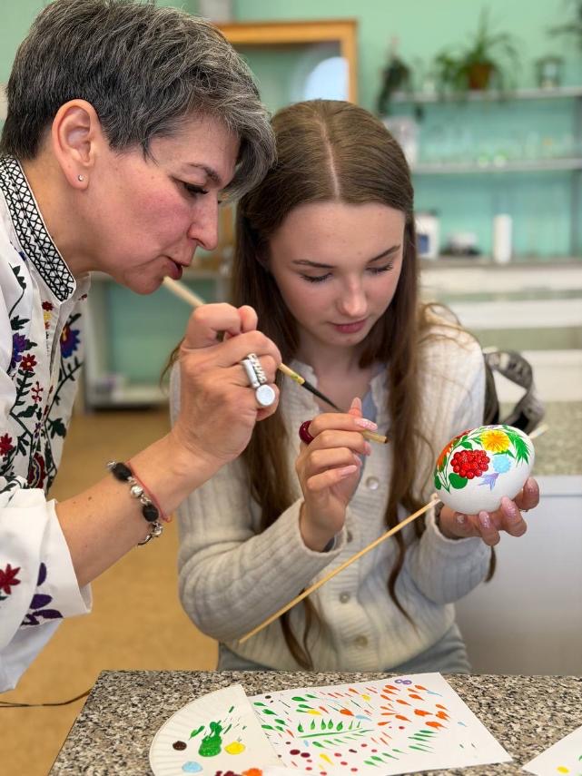 Вони використовували традиційні орнаменти: витончені квіточки, гілочки, листочки. Кожна писанка вийшла унікальною, кожен додав щось своє – кольори, візерунки. Під час роботи студенти не лише навчилися техніки розпису, а й глибше пізнали українські традиції та культури. Дякуємо за незабутню зустріч Людмилі ТІМАКОВІЙ та Оксані КОСЕНКО.