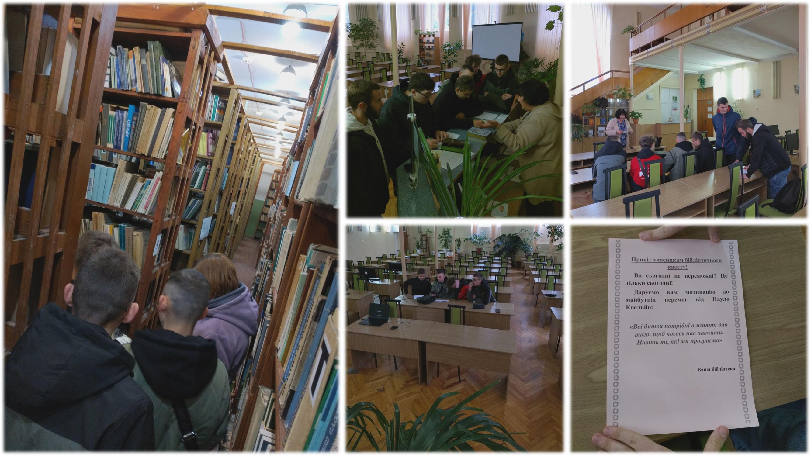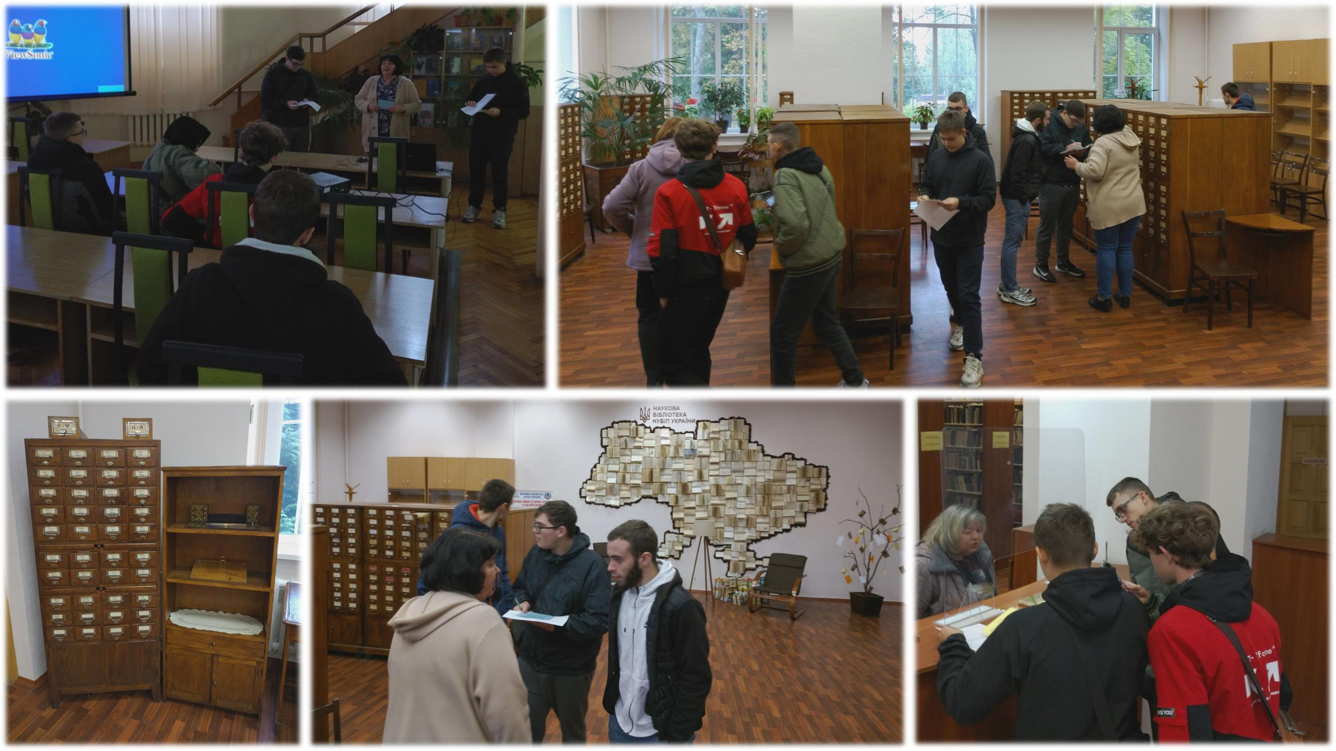На завершення, щоб закріпити отримані знання та зробити знайомство з бібліотекою захоплюючим, першокурсники взяли участь у бібліотечному квесті. Завданням було, використовуючи різні відділи, розділи та системи пошуку, розгадати зашифрований вислів про бібліотеку. Це допомогло студентам легко орієнтуватися у просторі та ресурсах.