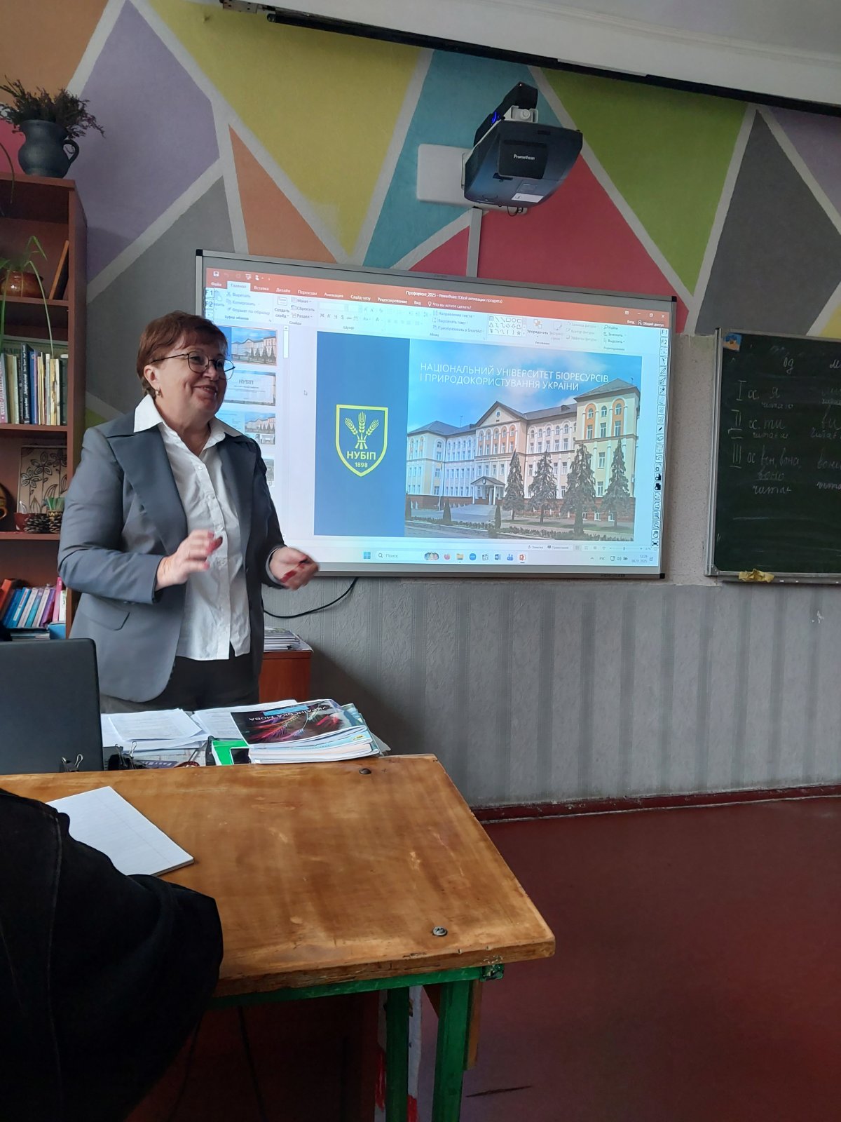 На завершення зустрічей доцент Меланія ХИЖНЯК запросила учнів завітати до університету і на власні очі побачити ошатні авдиторії, навчальні лабораторії і їх новітнє обладнання, поспілкуватися з викладачами. І така нагода трапиться незабаром, коли університет відчиняє свої двері усім, хто бажає стати професіоналом у своїй справі, бо це – Femily day: твій вибір НУБіП України!