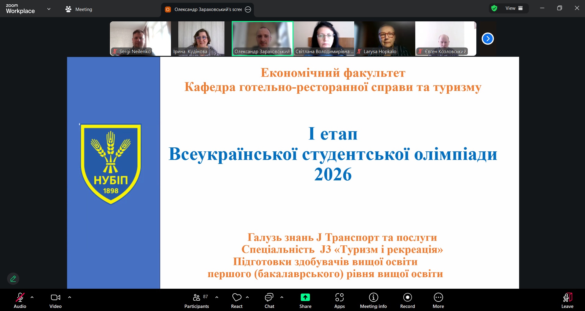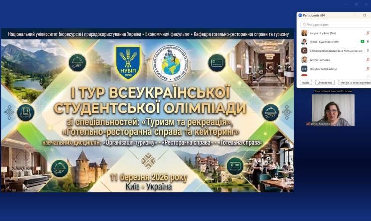 11 березня 2026 року на кафедрі готельно-ресторанної справи та туризму економічного факультету Національного університету біоресурсів і природокористування України відбувся I етап Всеукраїнської студентської олімпіади з навчальних дисциплін «Організація туризму», «Ресторанна справа» та «Готельна справа». Захід об’єднав студентів 2–3 курсів спеціальностей «Туризм та рекреація», «Готельно-ресторанна справа та кейтеринг», які прагнули перевірити свої професійні знання, аналітичні здібності та вміння застосовувати теоретичні знання у практичних ситуаціях. Участь в олімпіаді з навчальних дисциплін брали участь 74 здобувача, що свідчить про високий інтерес молоді до фахових змагань і професійного розвитку. Серед учасників були також активні члени студентських наукових гуртків «Ресторатор», «Агротурист», «HoReCa», «Туристичний візіонер» та «Туризм та Рекреація», які активно долучаються до наукової та практичної діяльності кафедри.