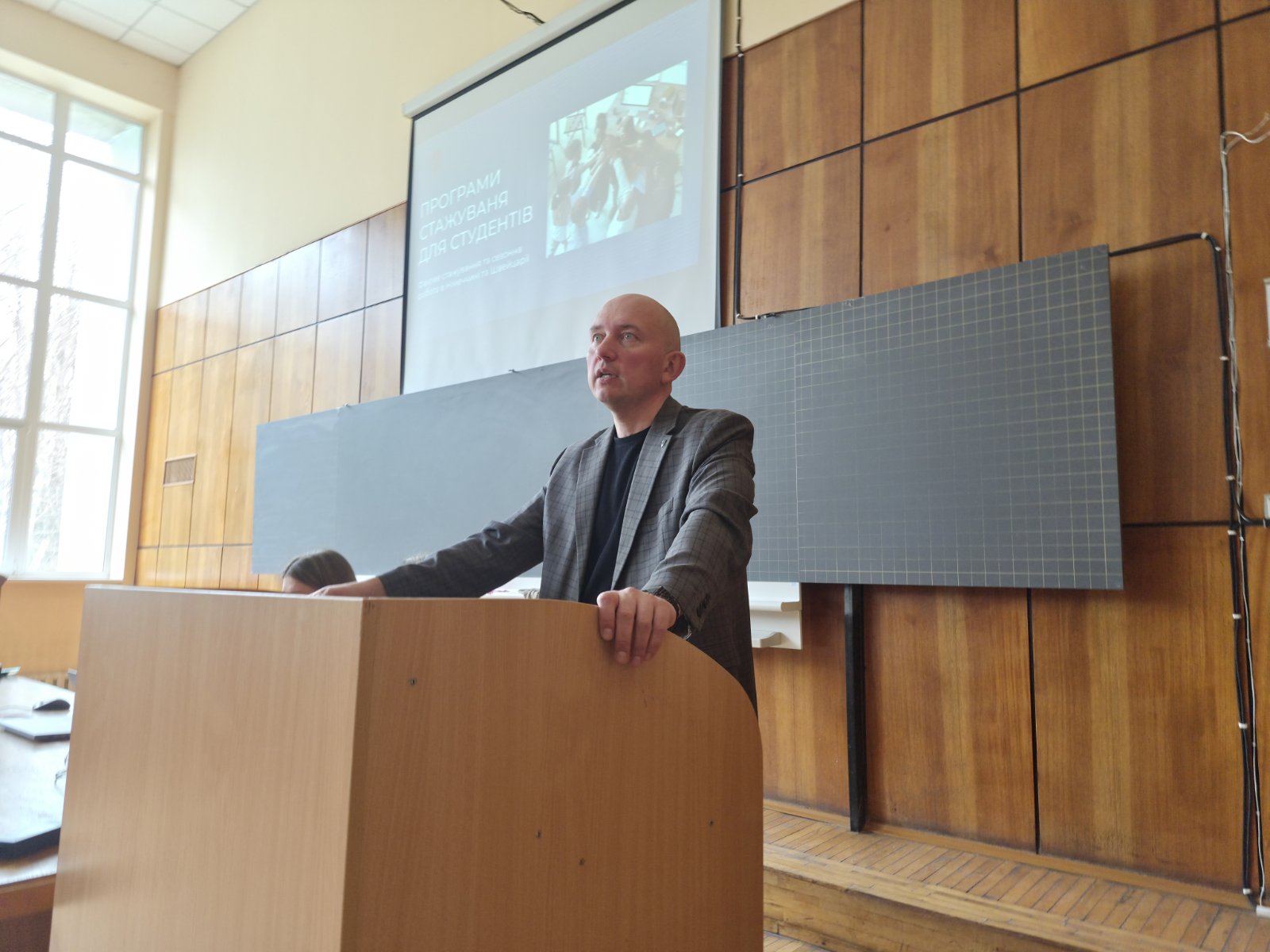 Гості зібрання, Оксана ЯРМОШЕНКО — провідний фахівець відділу міжнародних зав’язків та Діана СТАРШИНІНА — директор компанії «Інтер агро імідж» розповіли про популярну програму сезонної роботи для студентів з України. Зараз активно триває набір на літню практику на Karl’s Erdbeere-Hof у Німеччині на сезон 2026 року. Програма орієнтована на активних студентів, які готові до фізичної праці на свіжому повітрі. Переважно це збір полуниці на полях компанії 2–3 місяці протягом літа. Під час практики студентів забезпечують проживанням, медичним страхуванням та обслуговуванням на період трудового договору, транспортом з певних міст України до ферми.