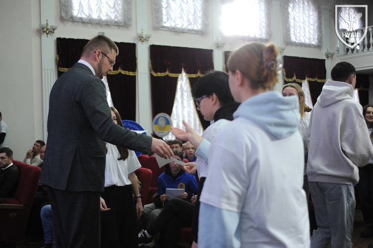 Відкрив інтелектуальні перегони проректор університету Сергій КВАША, звернувшись до учасників із натхненним словом і побажаннями успіху. Як він зазначив, цьогорічні завдання вимагали від команд не лише ерудиції, а й високого рівня взаємодії, командної злагодженості та вміння ухвалювати спільні рішення. Умови конкурсу, традиційно, виключали використання будь-яких гаджетів.