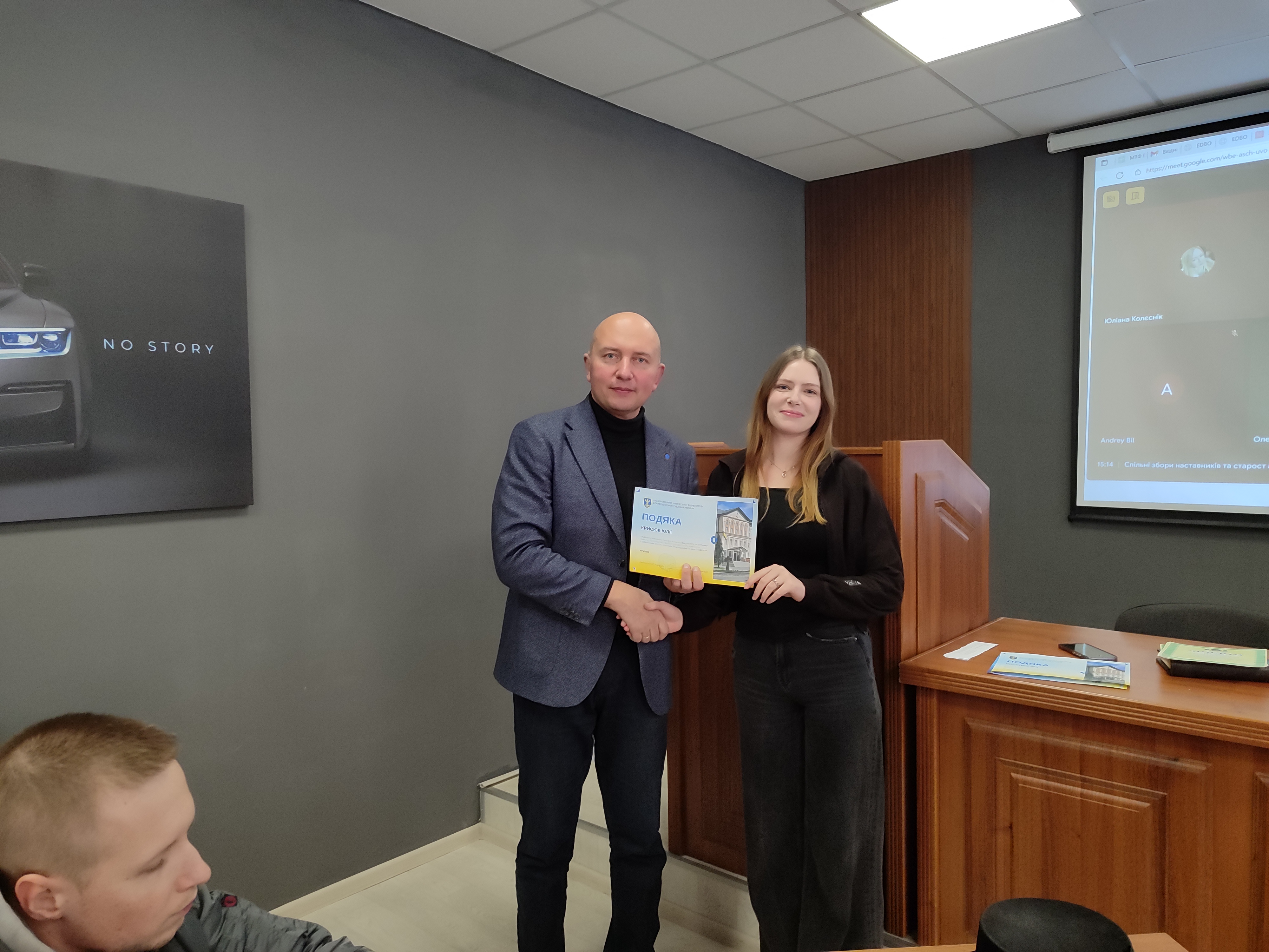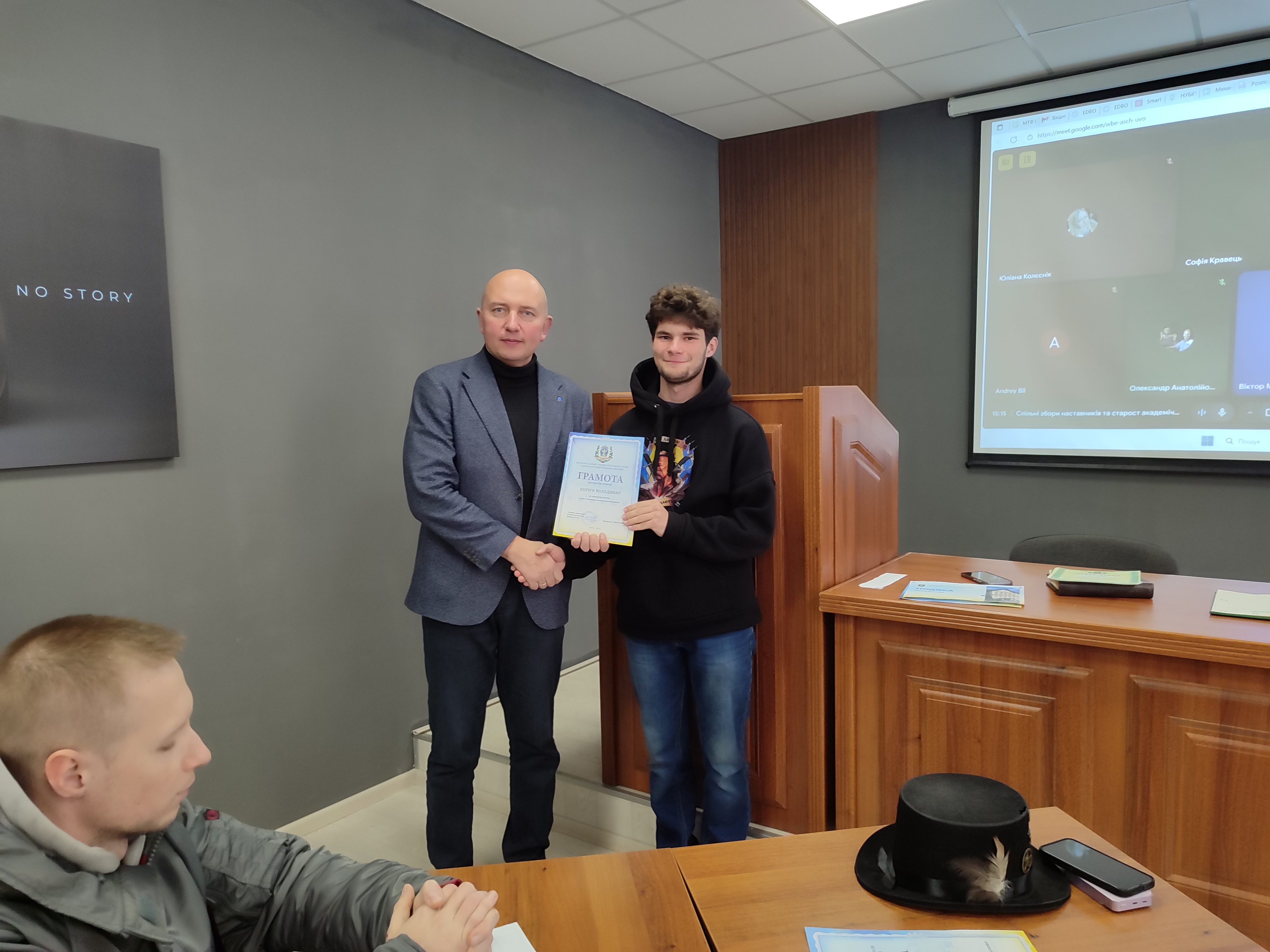 Розпочали засідання з урочистої ноти, присвяченої Міжнародному дню студента. Керівництво факультету відзначило грамотами найкращих здобувачів освіти, які продемонстрували вагомі досягнення у навчанні, спорті, науковій роботі, участі у творчих колективах та громадській активності, що ще раз підтвердило різнобічність талантів обдарованої молоді.
