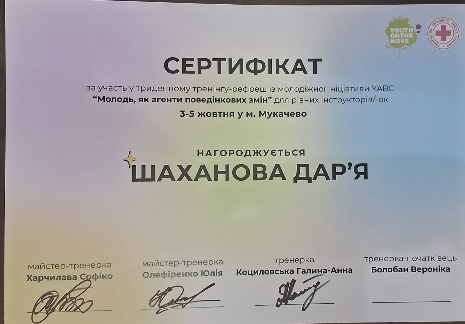 Цього року асистент кафедри соціальної роботи та реабілітації Шаханова Дарія Валеріївна взяла участь у рефреші програми YABC (Youth as Agents of Behavioural Change). Це простір, де фасилітатори та фасилітаторки відновлюють ресурси, діляться досвідом і надихаються спілкуванням.
