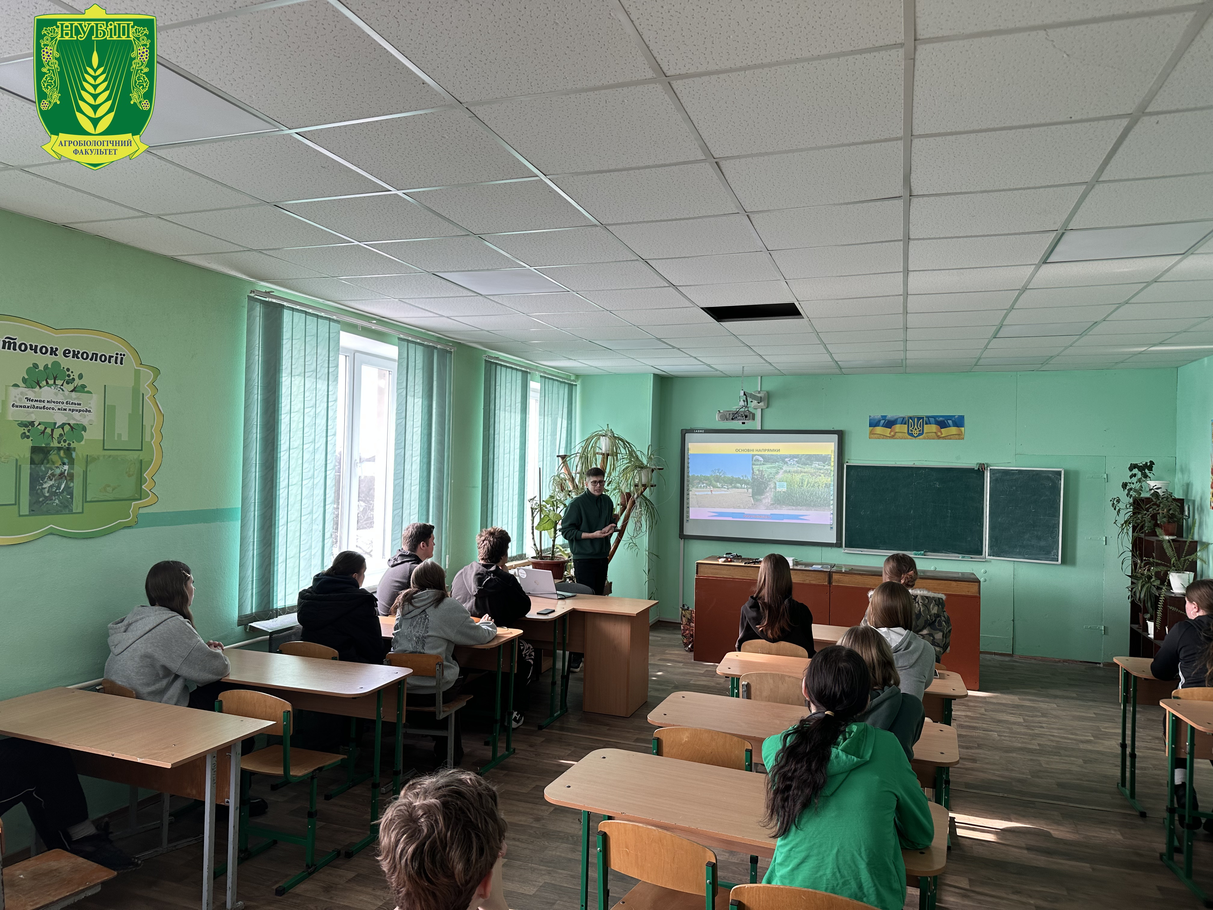 Доцент кафедри садівництва ім. проф. Симиренка Олександр Гаврилюк презентував школярам можливості навчання в НУБІП України, зокрема на агробіологічному факультеті – осередку сучасної аграрної науки, інновацій та практичної підготовки фахівців для аграрного сектору. Факультет здійснює підготовку висококваліфікованих спеціалістів за актуальними освітніми програмами, серед яких: