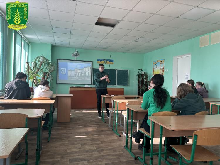 У своїй розповіді він окреслив структуру університету, особливості освітнього процесу, можливості академічної мобільності, участі у наукових гуртках, міжнародних проєктах і студентському житті. Особливу увагу було приділено перевагам очного навчання в сучасних умовах – адже не всі заклади вищої освіти сьогодні мають змогу забезпечити повноцінний освітній процес із доступом до лабораторій, дослідних господарств, навчально-наукових центрів і безпечної інфраструктури.