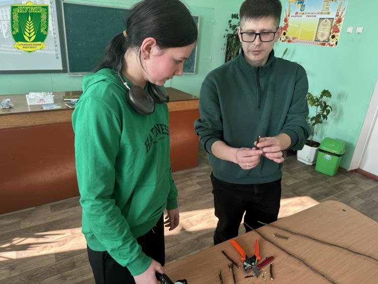 Проте найяскравішим моментом заходу став майстер-клас із окулірування яблуні. На прикладі культурної яблуні школярі побачили, як народжується майбутній сад – із маленької бруньки, що прищеплюється з точністю, терпінням і знанням справи. Олександр Гаврилюк не лише продемонстрував техніку окулірування, а й залучив учнів до практичної роботи. Старшокласники з цікавістю й азартом спробували себе в ролі майбутніх агрономів і садівників, відчувши живий зв’язок науки з природою.
