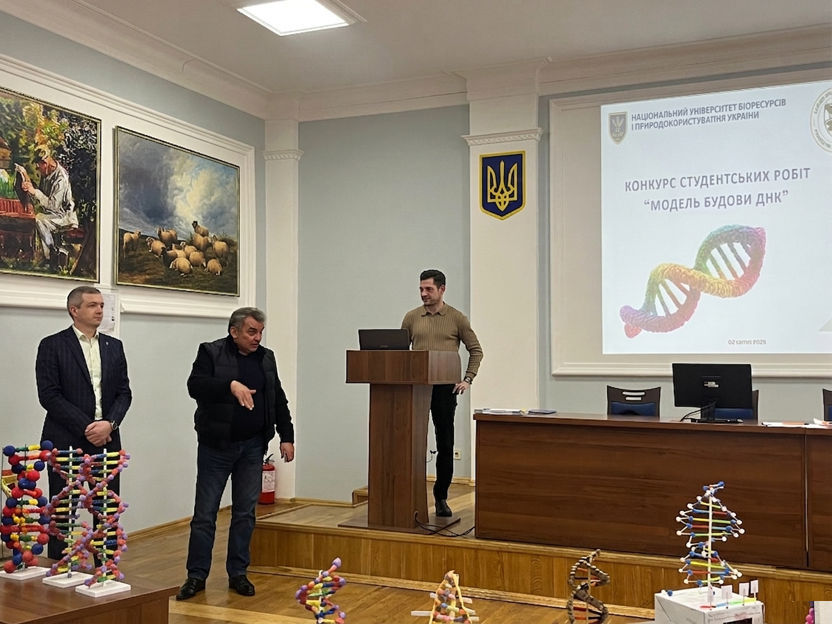 2 квітня 2026 року на кафедрі прикладної біології, розведення та генетики тварин відбулася визначна науково-освітня подія – конкурс студентських робіт «Модель будови ДНК». Захід був спрямований на стимулювання пізнавальної активності здобувачів вищої освіти, поглиблення розуміння структурно-функціональної організації генетичного матеріалу, розвиток навичок наукової візуалізації, комунікації та командної роботи.