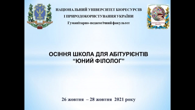 28 жовтня на гуманітарно-педагогічному факультеті відбулося урочисте закриття осінньої сесії Школи «Юний філолог» для абітурієнтів, яку проводила кафедра романо-германських мов і перекладу. Цього року захід відвідали школярі гімназії №179 Голосіївського району м. Києва, гімназії «Київська Русь» м. Києва, Боярської ЗОШ №1, Нововороб’ївської ЗОШ Житомирської області, Богданівської ЗОШ І-ІІІ ступенів імені Григорія Ващенка Чернігівської області, Острожанського закладу загальної середньої освіти І-ІІІ ступенів Черкаської області та ЗОШ І-ІІІ ступенів ім. Пулюя смт. Гримайлів Тернопільської області.