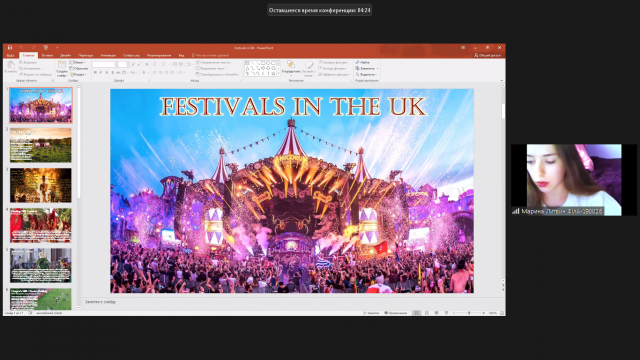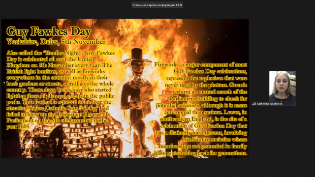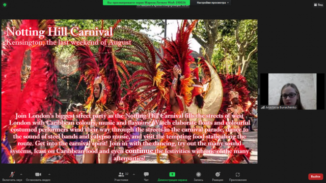 Марина Литвин, Катерина Баштова, Анастасія Буряченко, студентки 3 курсу, занурили абітурієнтів в атмосферу фестивалів, що проводяться на території Великобританії у формі презентації «Ten English Festivals».