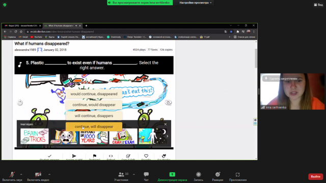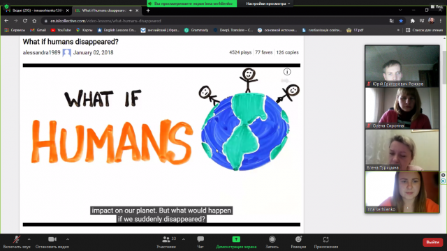 Роботу осінньої школи «Юний філолог» продовжила Інна Сергієнко, асистент кафедри романо-германських мов і перекладу, спрезентувавши інтерактивну гру «What if humans disappeared?». Спочатку присутні переглянули відеоролику про те, що, можливо, трапилося б, якби люди раптово зникли, після чого учнів пройшли лексико-граматичний тест.