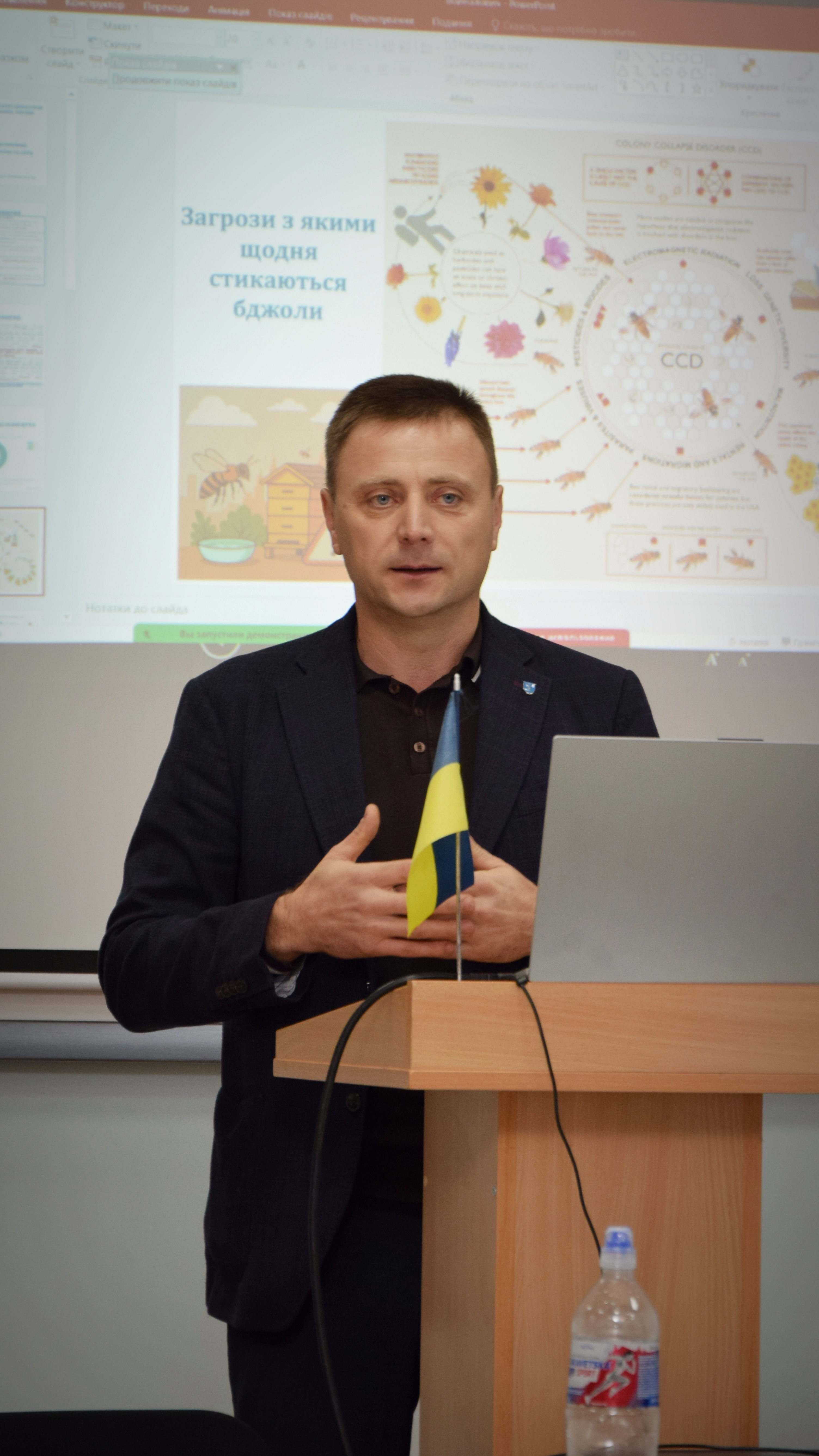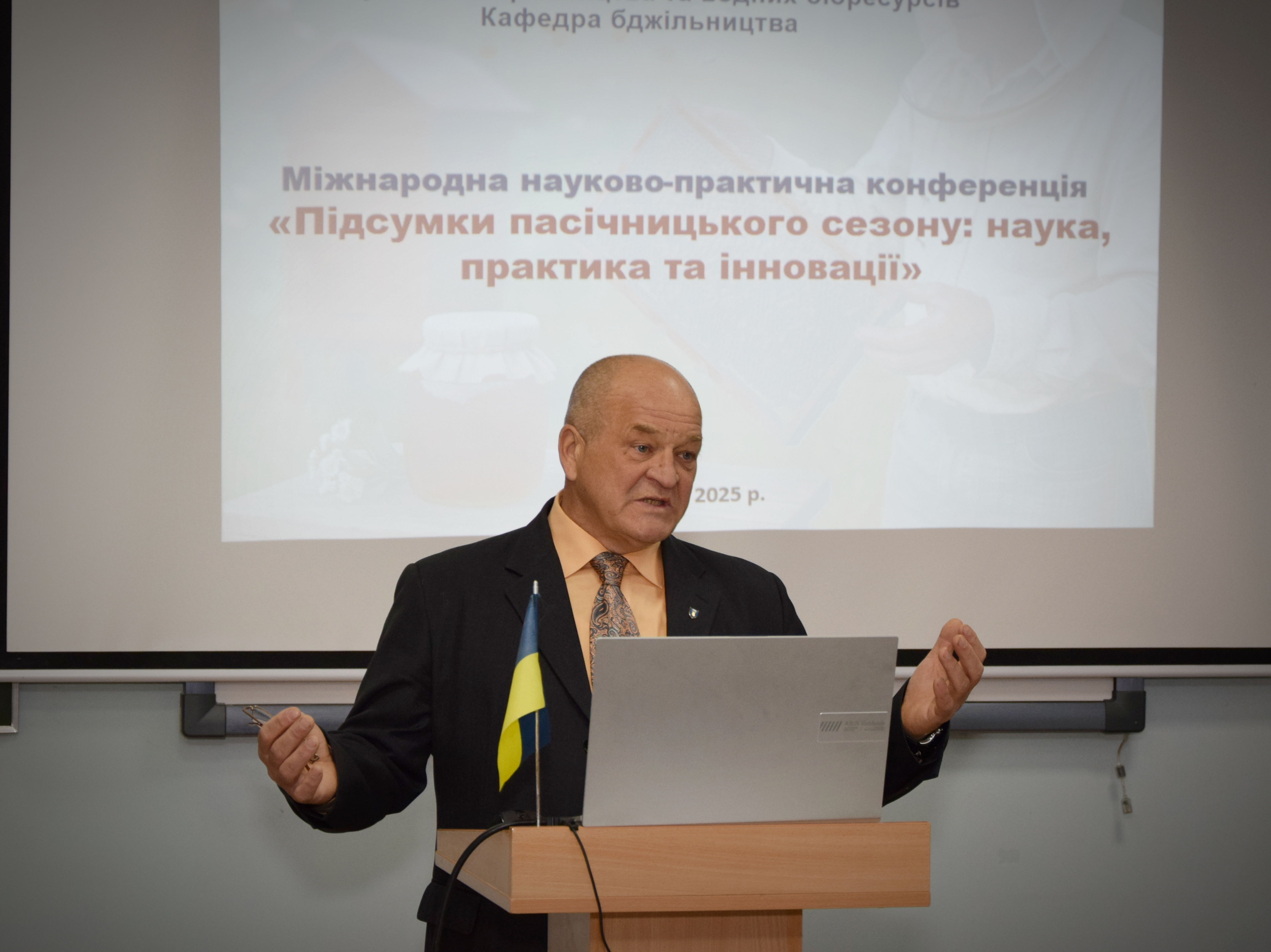 У своєму виступі він наголосив на важливості поєднання наукових підходів і практичного досвіду у вирішенні сучасних викликів галузі. Зокрема, професор звернув увагу на проблеми боротьби з кліщем Varroa destructor, наслідки пестицидного навантаження на медоносних бджіл, вплив змін клімату на їх біологічний ритм і зимостійкість.