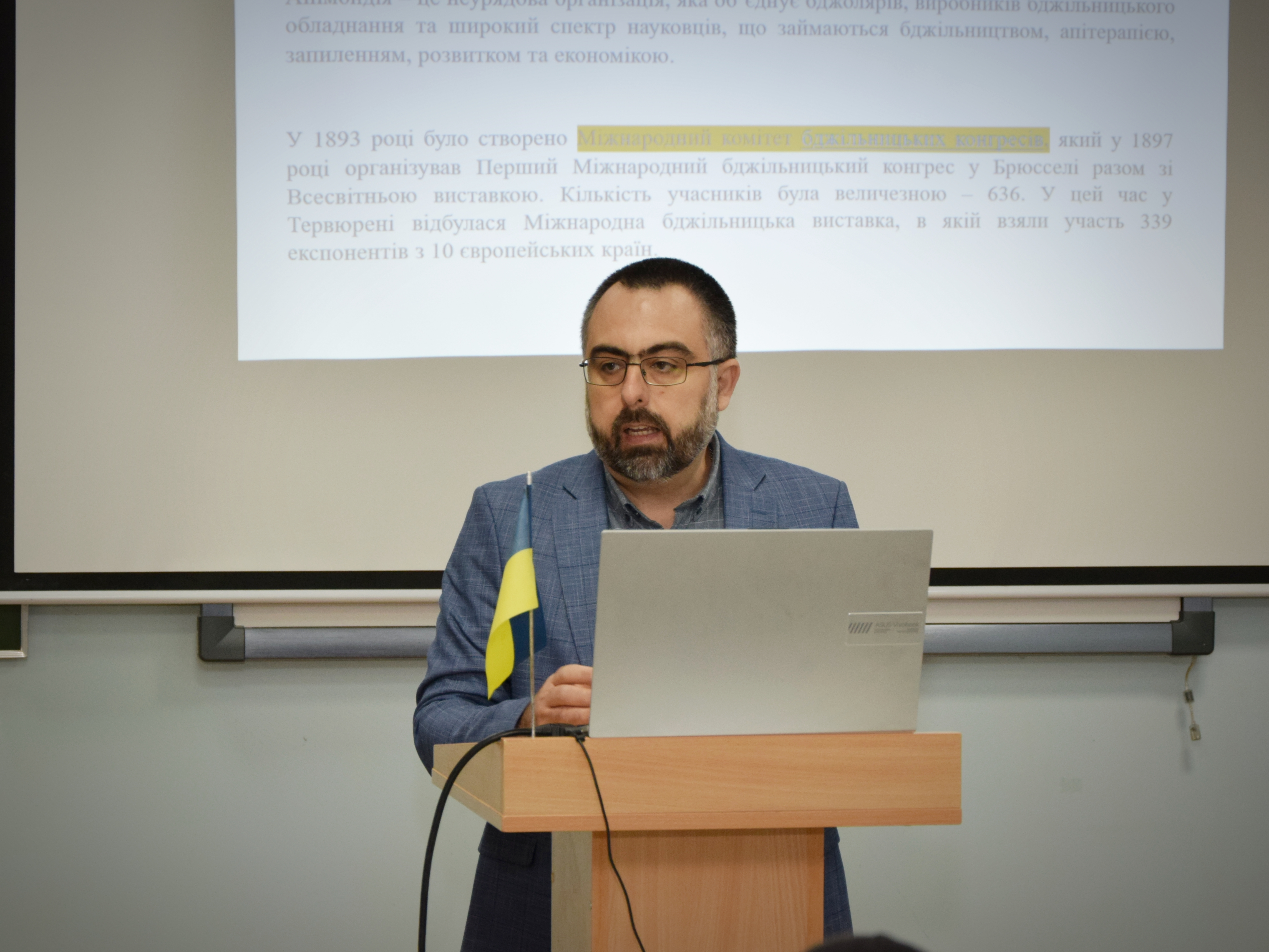 Доцент Микола ВОЙНАЛОВИЧ виступив із доповіддю «Тенденції та перспективи бджільництва України та світу», у якій представив широкий аналітичний огляд сучасного стану галузі. Він зупинився на глобальних процесах, що визначають розвиток бджільництва, зокрема на зростанні інтересу до органічного виробництва та впровадженні цифрових технологій моніторингу стану вулика.