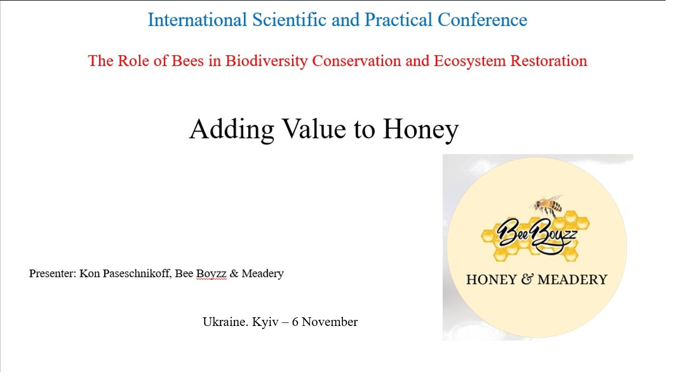 Цікавою була доповідь представників Канади — Kon and Julie Paseschnikoff, власників компанії Bee Boyzz Honey & Meadery (Манітоба, Канада), які поділилися досвідом утримання бджіл у суворих кліматичних умовах Північної Америки та розповіли про використання технологій збереження тепла у вуликах, організацію зимівлі в контрольованих приміщеннях і розвиток медоваріння.