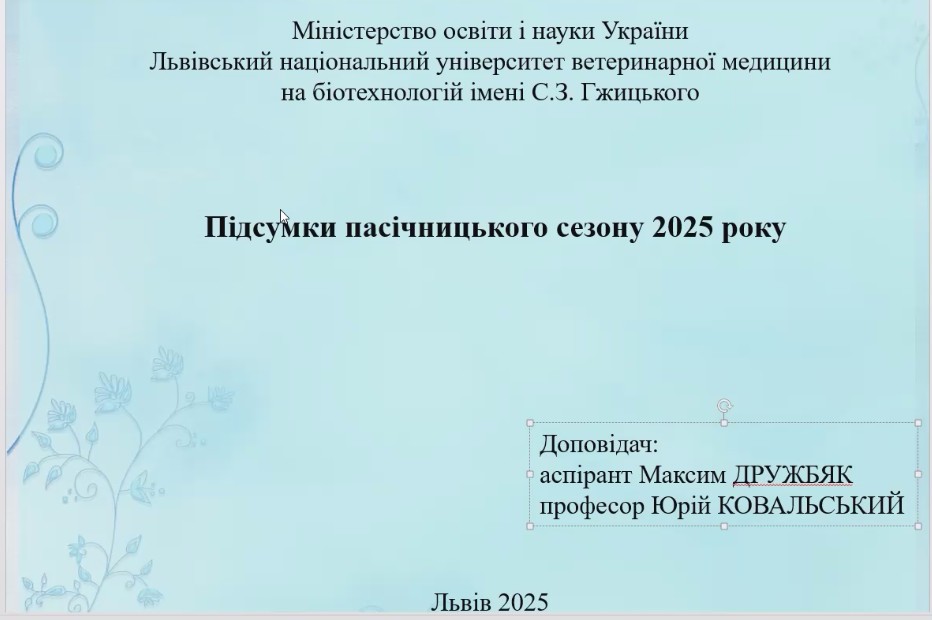 Ці наукові доповіді засвідчили високий рівень підготовки молодих дослідників і активну наукову діяльність кафедри, спрямовану на підвищення ефективності та інноваційності українського бджільництва.