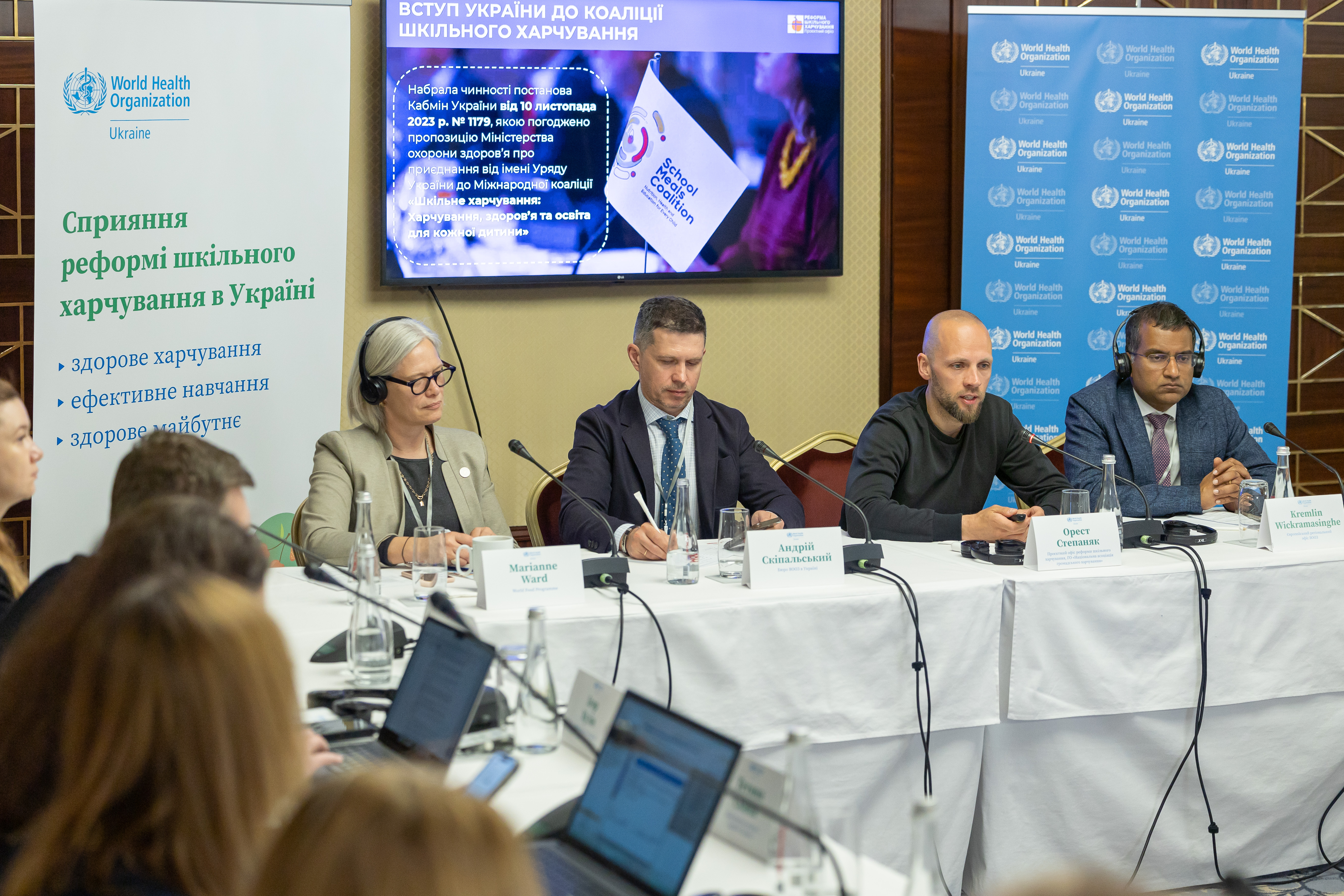 Від листопада 2023 р. Україна приєдналась до Міжнародної коаліції «Шкільне харчування: харчування, здоров’я та освіта для кожної дитини». Наразі діти через війну перебувають в постійному стресі. З-поміж дітей віком від 7 до 9 років 29% мають надлишкову масу тіла (показники для країн варіюються від 43% дo 6%); 12% – ожиріння; <50% їдять свіжі фрукти і овочі щодня; >20% споживають безалкогольні напої частіше, ніж 3 дня на тиждень. Шкільне середовище може потенційно сприяти споживанню дітьми більш корисної для здоров'я їжі.
